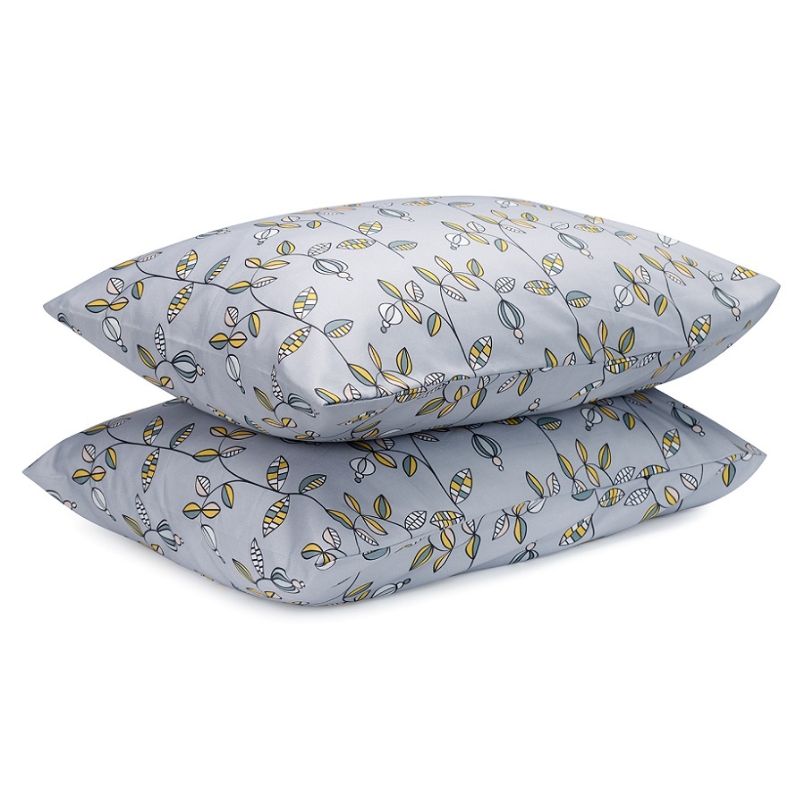 "Набор из двух наволочек из сатина с растительным принтом ",Ягоды тайги", из коллекции Russian North добавит атмосферу природы русского севера в ваш интерьер. Гладкий, приятный на ощупь материал плотностью 210 TC отличается особым способом пряжи – нити переплетаются в скрученном виде, что придает ткани дополнительную прочность.