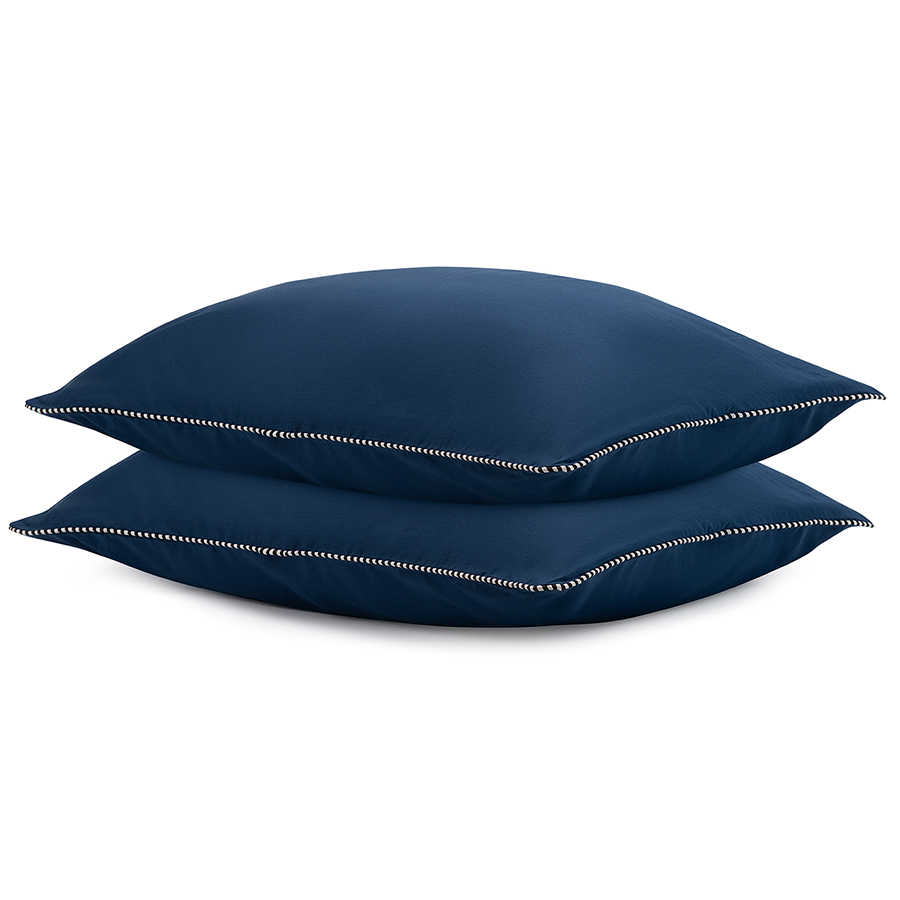 "Набор из двух наволочек темно-синего цвета с контрастным кантом из коллекции Essential дополнит постельное белье базовых оттенков. В составе материала хлопок и тенсель (,эвкалиптовое волокно),. Хлопок придает изделию легкость и отличные гигроскопические свойства. Благодаря тенселю ткань обладает бактерицидными свойствами и повышенной прочностью, меньше мнется и очень приятна к телу, напоминая одновременно шерсть и лен, поскольку сохраняет тепло и дает ощущение прохлады. Тенсель относится к экологически чистым волокнам, его производство не загрязняет окружающую среду.