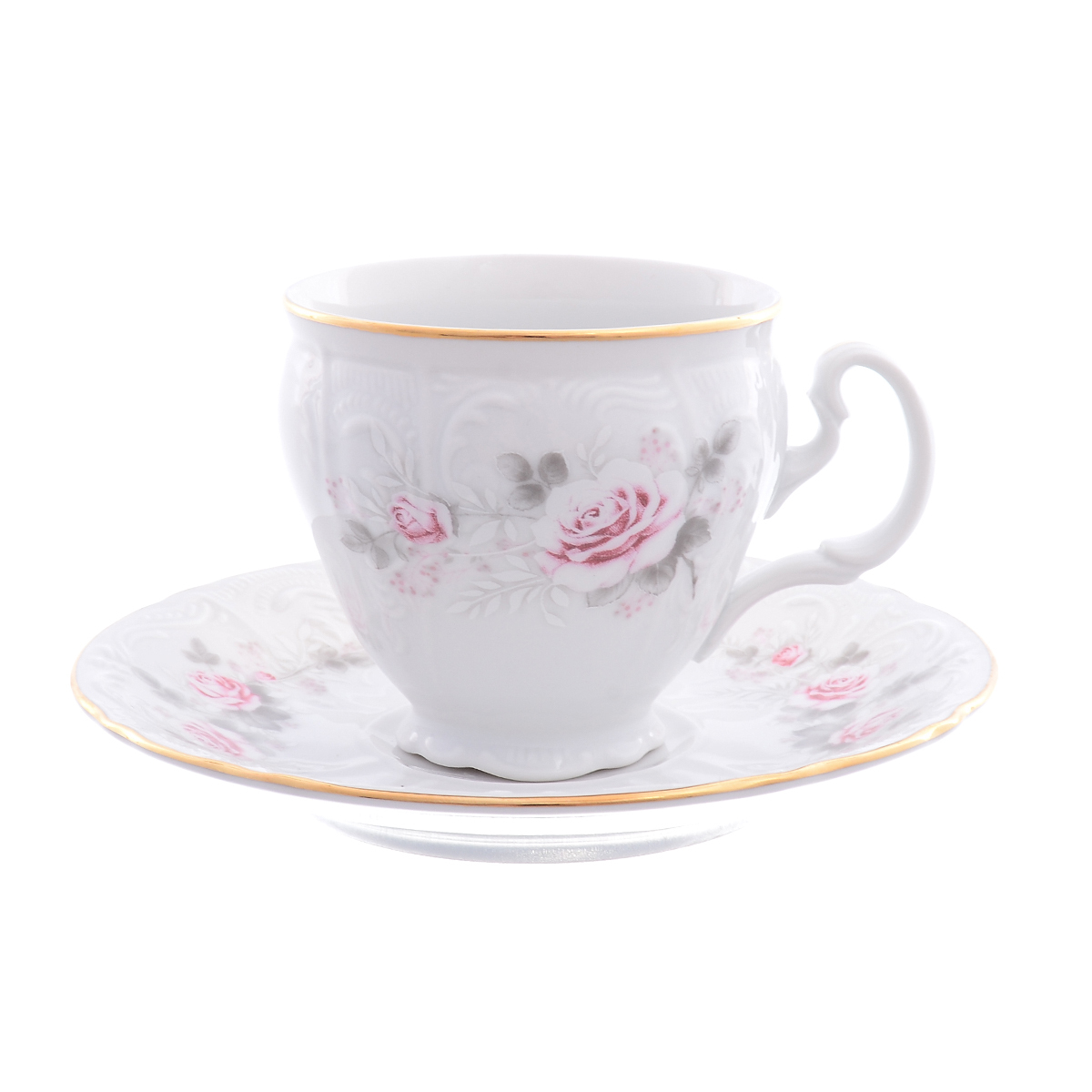 Набор кофейных пар Bernadotte Серая роза золото 170 мл(6 пар)