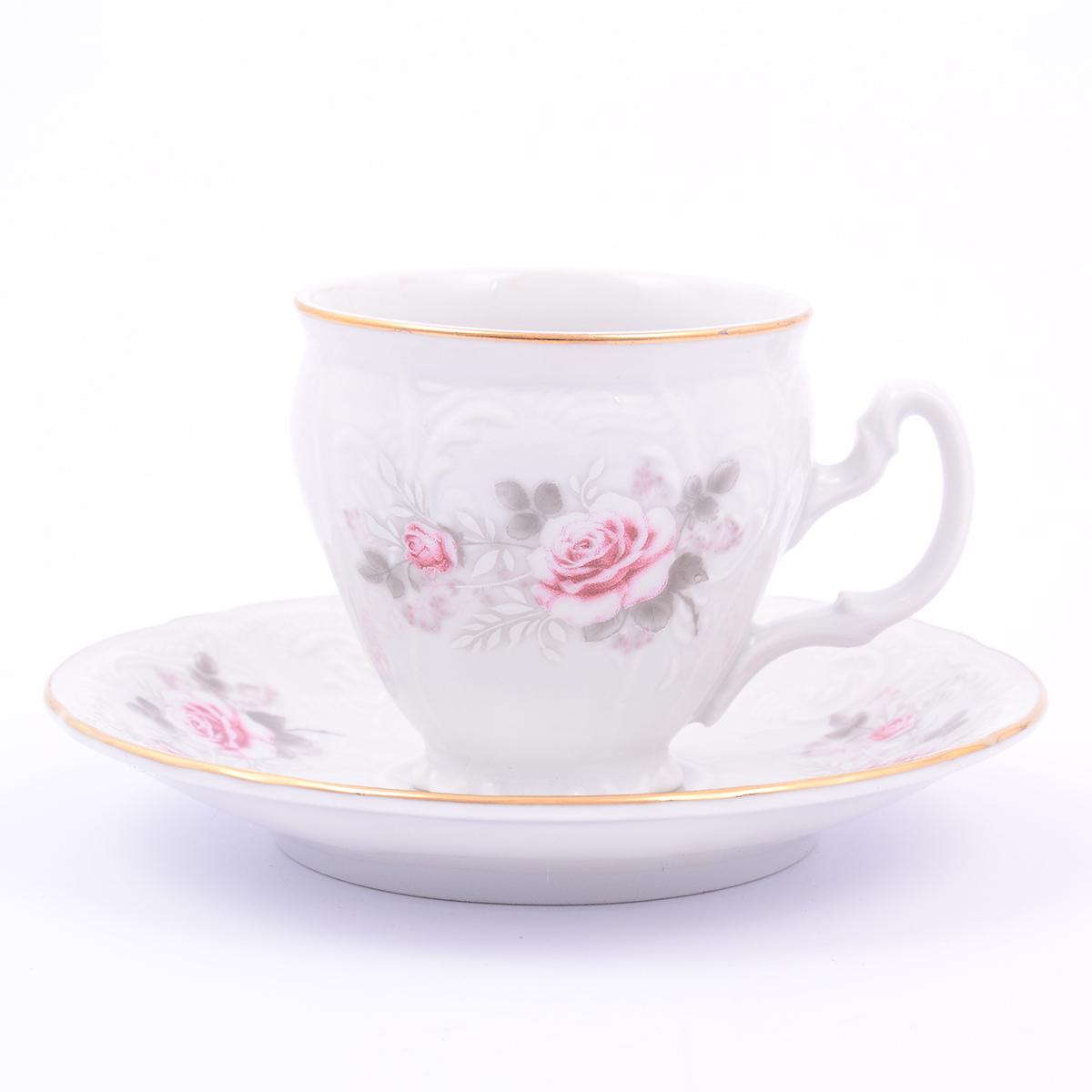 Набор кофейных пар Bernadotte Серая роза золото 90 мл(6 пар)