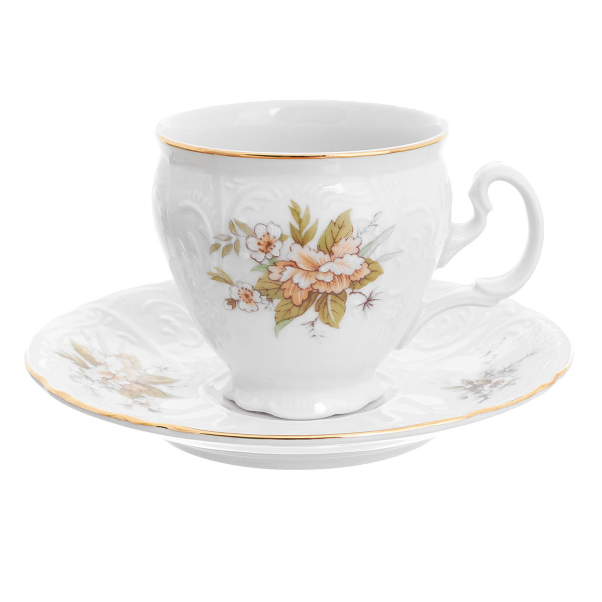 Набор кофейных пар Bernadotte Зеленый цветок 170 мл(6 пар)