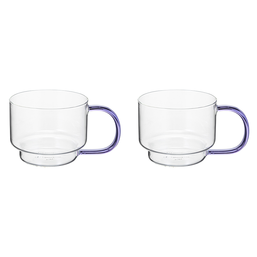 Материал: боросиликатное стекло. Размеры: 13,8х9,8х7,7 см. Объем: 400 мл. Цвет: прозрачный/фиолетовый. Количество в наборе: 2 шт.