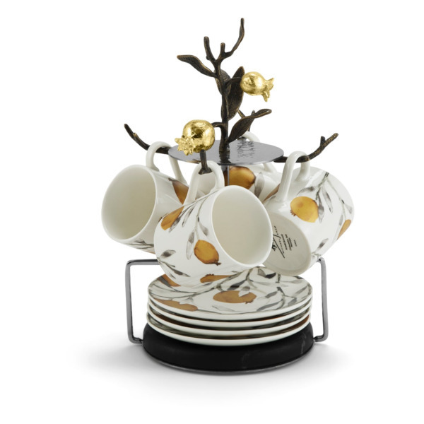 Набор кружек с блюдцами на подставке Michael Aram Гранат 9 предметов h 24 см, фарфор