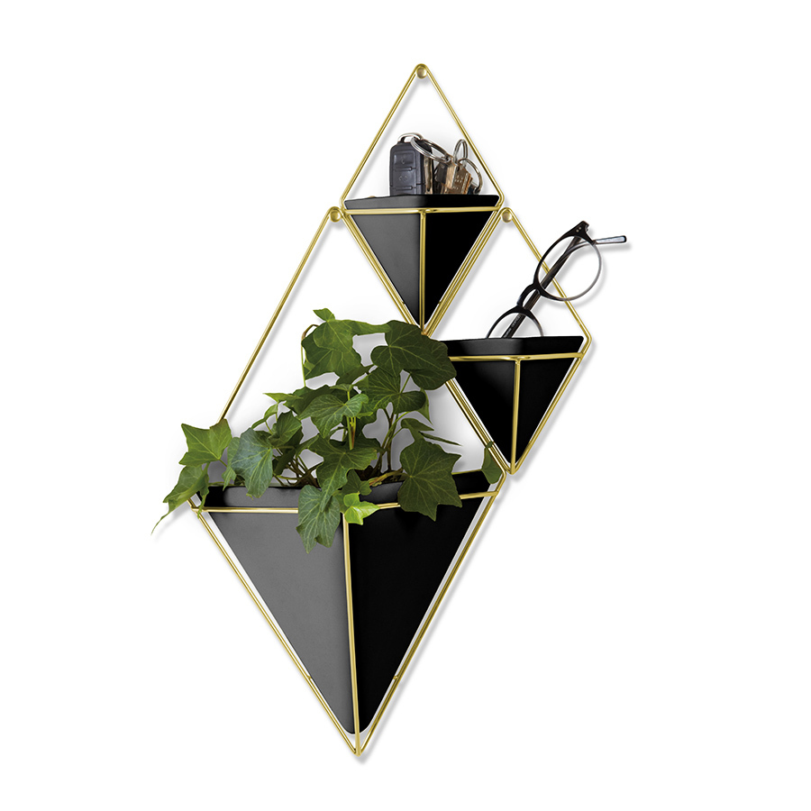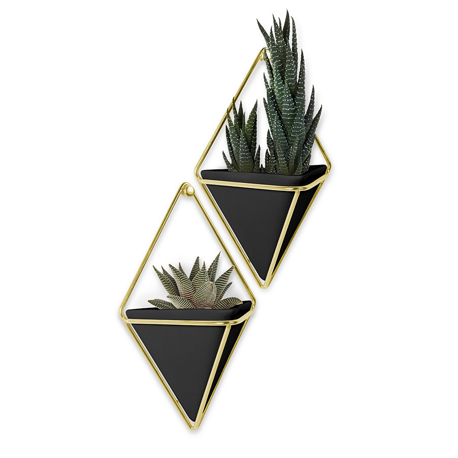 Набор настенных кашпо Trigg, 19х23 см, черный/латунь, 2 шт.