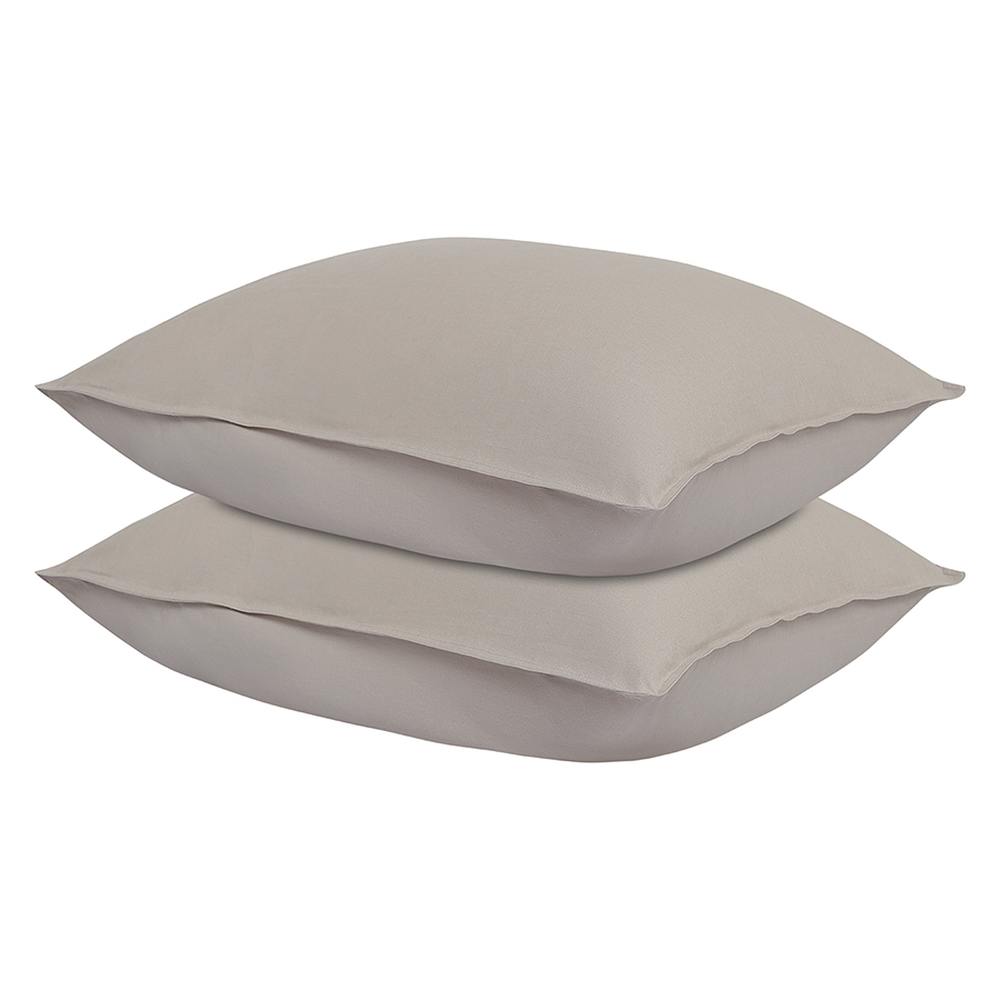"Наволочки изо льна и хлопка серо-бежевого цвета из коллекции Essential – стильное постельное белье высочайшего качества, которое подарит ощущение комфорта во время сна и привнесет в интерьер спальни природную элегантность.