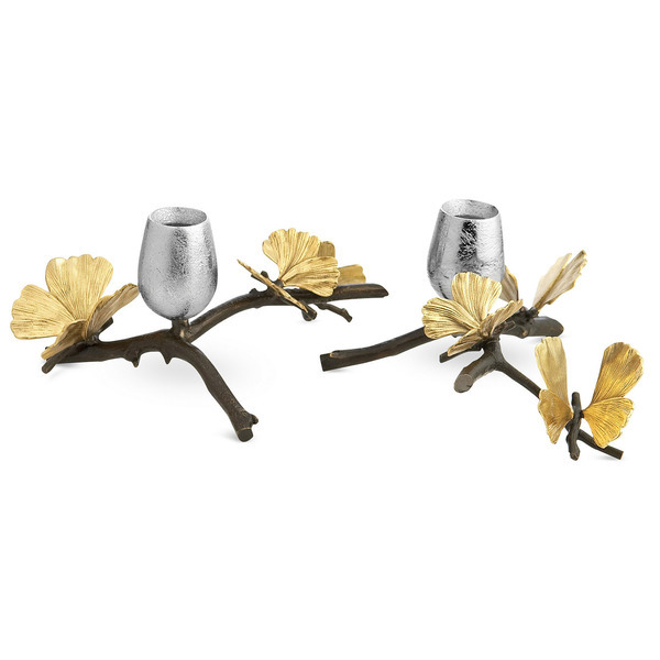 Набор подсвечников Michael Aram Бабочки гинкго 21 см, 2 шт, сталь нержавеющая