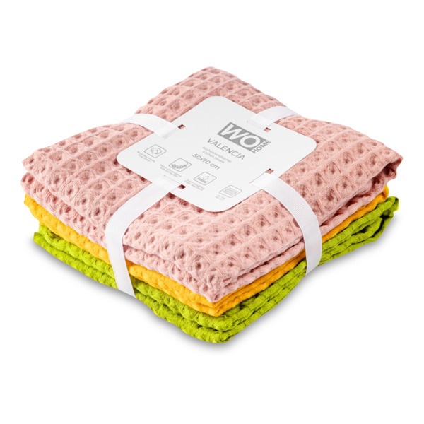 Набор полотенец кухонных WO HOME VALENCIA 50х70 см, 3 шт, хлопок, розовый, желтый, зеленый, п/к
