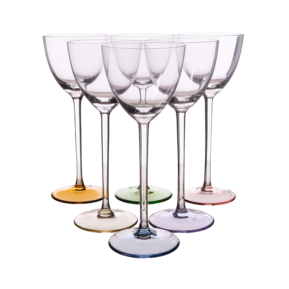 Мастера чешского производства Crystalite Bohemia знают толк не только в качестве богемского стекла и его неповторимом звучании, но также в эстетичной подаче и оригинальном исполнении своих шедевров. Каждому гостю можно подать рюмку с ножкой его любимого цвета, можно сочетать ножки изделий с тарелками из разноцветного сервиза – в общем, когда дело касается сервировки, фантазии нет предела. Как и нет предела совершенству изделий из богемского стекла. В комплект входит 6 рюмок объемом 110 мл каждая.