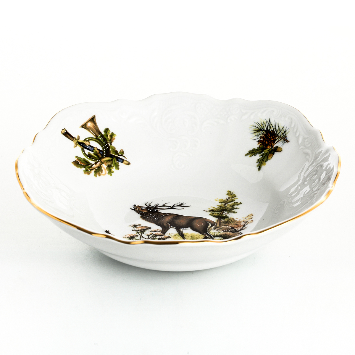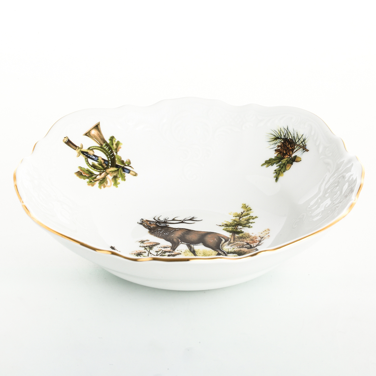 Премиум-качество и особый шарм представленной коллекции завораживают и уносят воображение далеко - в самую чащу леса, где бродят дикие кабаны, фазаны и благородные олени. Набор салатников, вместительных и практичных, поможет вам сервировать стол оригинально и со вкусом. Сезон охоты на посуду Бернадотт из одноименной коллекции открыт!