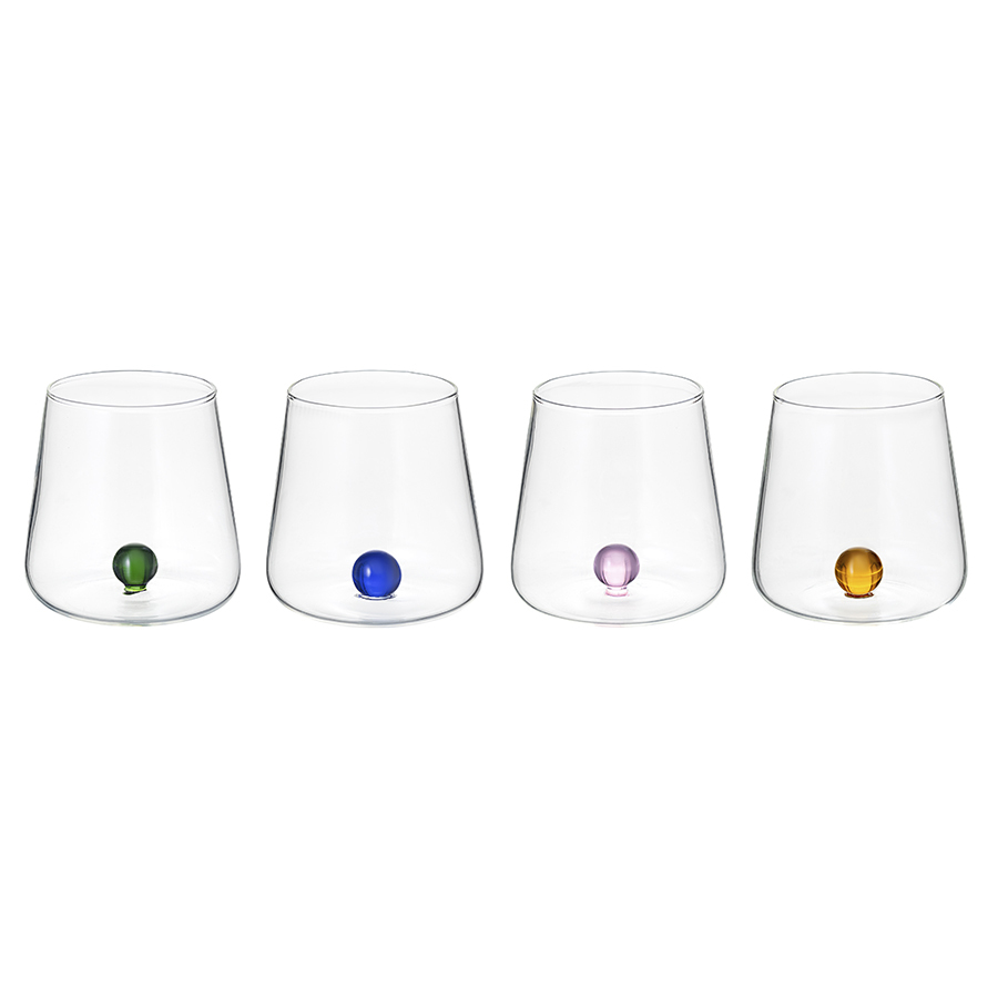 "Набор стаканов Orb – прекрасный способ сделать сервировку особенной. Дизайн с яркими акцентами в виде цветных шариков привлекает внимание и эффектно выделяет предметы из данной коллекции на фоне других.