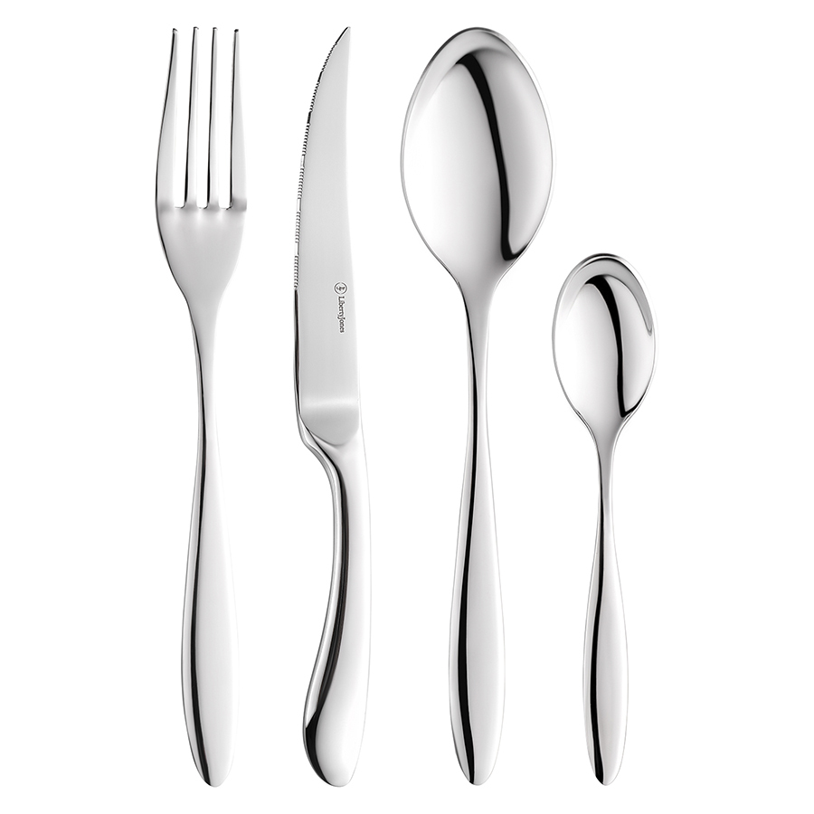"Отличное качество материалов, элегантный дизайн и практичность – все это делает столовые приборы Dinelux от дизайнерского бренда Liberty Jones прекрасным дополнением любой сервировки. Набор состоит из 16 предметов и включает все необходимое для обслуживания 4-х человек.