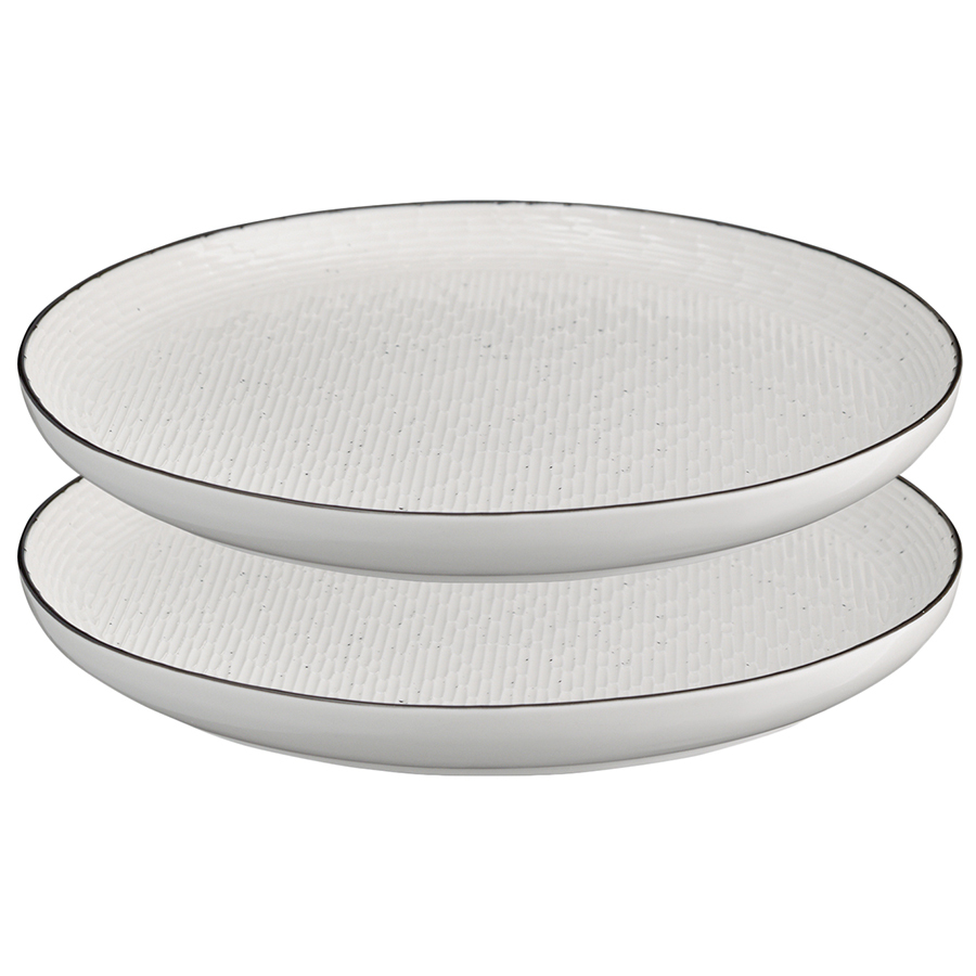 "Тарелки для сервировки из белоснежного фарфора серии Contour великолепно дополнят коллекцию стильной и практичной посуды. Рельефная поверхность и декоративная окантовка придают емкостям оригинальный вид. Материал изготовления неприхотлив в уходе, не впитывает загрязнения, является экологичным и безопасным для здоровья. Тарелки идеально подходят для подачи вторых блюд.