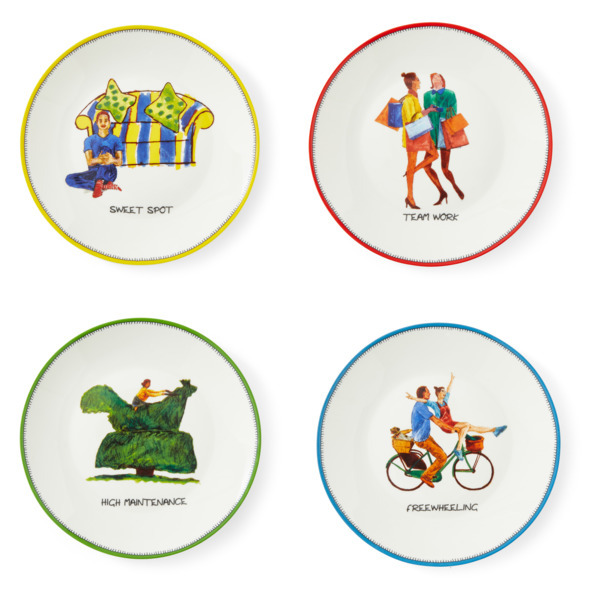 Набор тарелок пирожковых порционных Spode Кит Кемп Дудлс 15 см, 4 шт, фарфор костяной, п/к