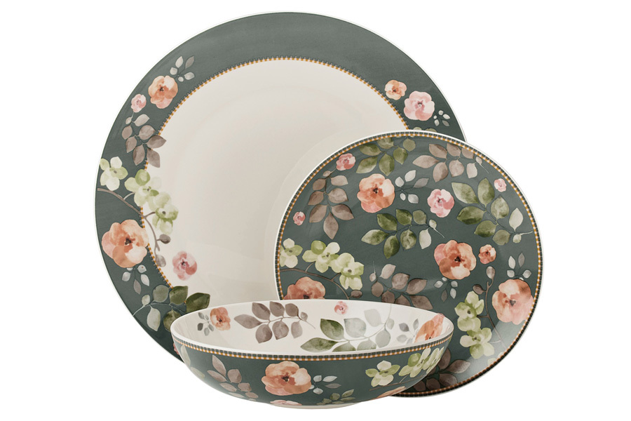 Сервиз обеденный, 4 перс, 16 пр, фарфор P, серо-зеленый, Цветы, Arcadia