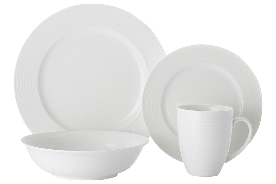 4 обеденные тарелки 26,5 см, 4 закусочные тарелки 20 см, 4 салатника 0,6 л, 4 кружки 0,38 л