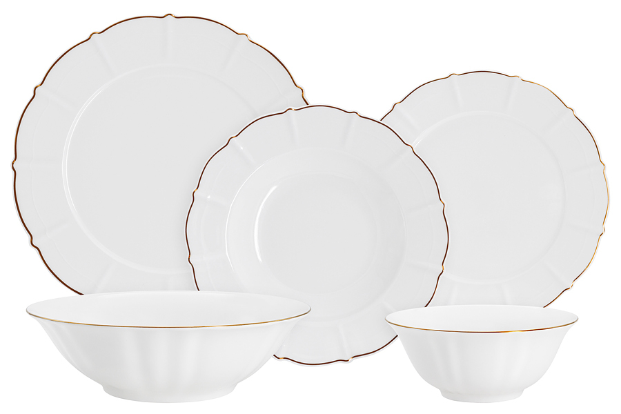 Сервиз обеденный, 6 перс, 21 пр, фарфор F, белый, с золотистым кантом, Lotus gold