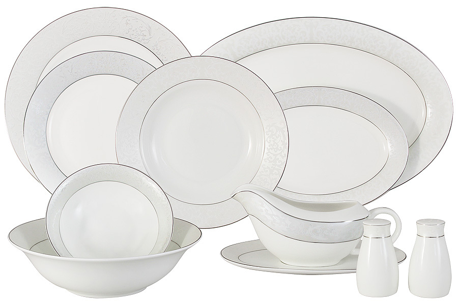 Сервиз обеденный, 6 перс, 27 пр, фарфор F, белый, с серебристым кантом, Melisenta