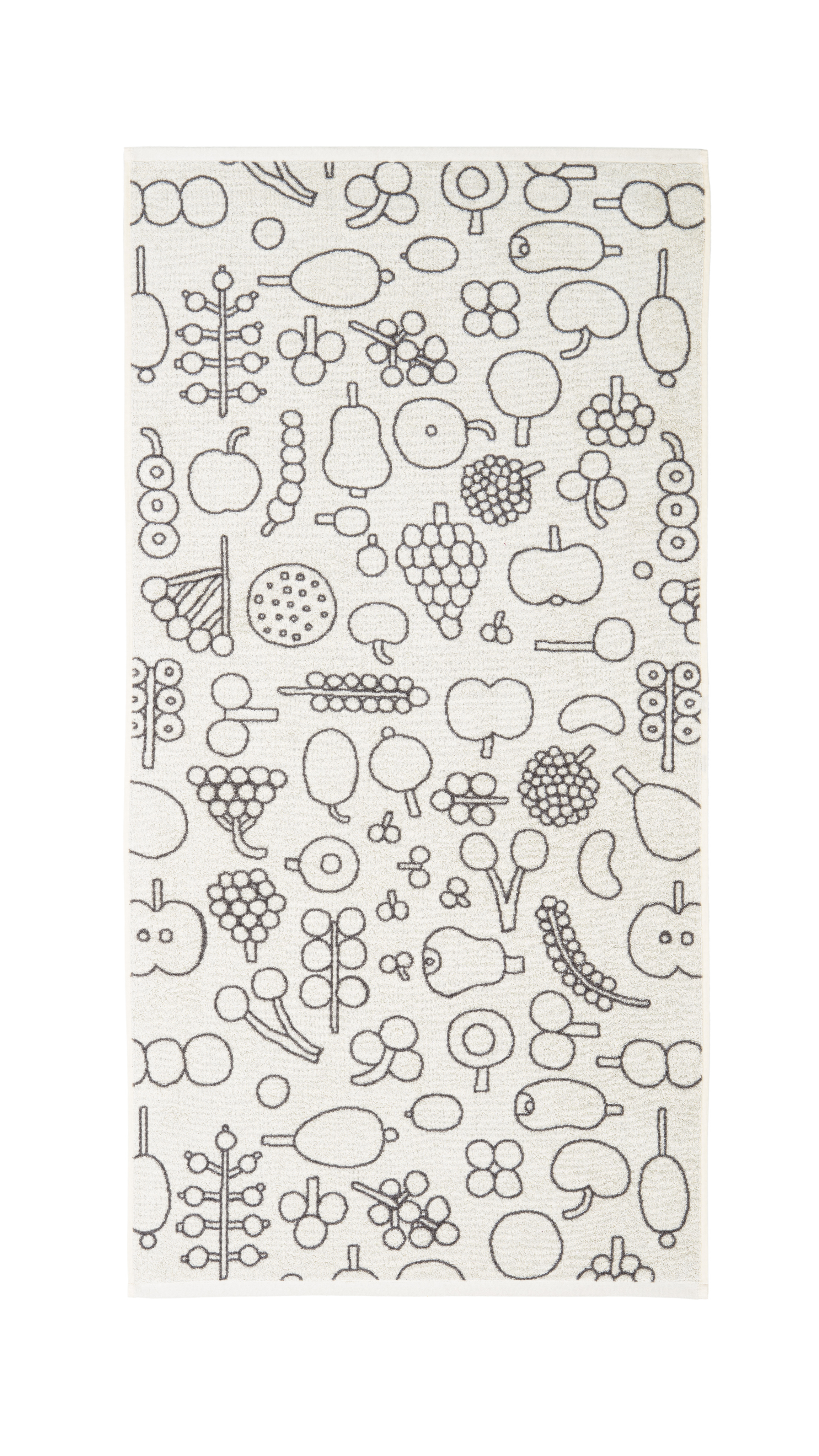 Мягкое полотенце из 100% органического хлопка украшено серым рисунком Frutta от художницы Ойвы Тойкка. Frutta - это забавный узор с отвесными грушами, яблоками и виноградом. Банное полотенце размером 70х140 см., в сером цвете, вызывает желание завернуться в него после принятия ванны или купания. Дополните набор полотенцем для рук или комбинируйте с другими полотенцами из коллекции. Полотенца прекрасно подойдут в подарок на новоселье и свадьбу. Уход: Стирка при температуре 60 градусов с вещами сходными по цвету.