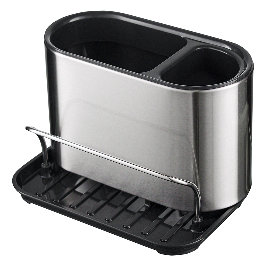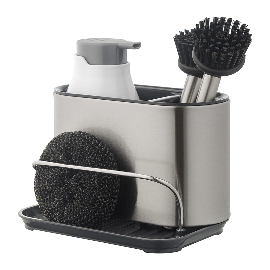 "Органайзер Atle позволяет компактно разместить средство для мытья посуды, губку, щетку и другие предметы для уборки кухни непосредственно на мойке или на столешнице. Изделие выполнено из прочного и устойчивого к износу АБС-пластика и нержавеющей стали. Стильный контейнер в универсальном цветовом решении органично вписывается в различные варианты оформления интерьера.