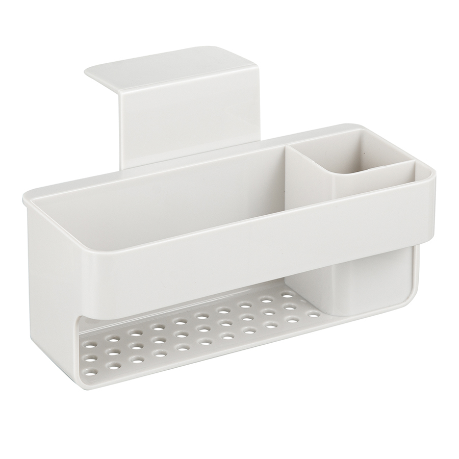 "Органайзер Ronja позволит удобно разместить на раковине все необходимые аксессуары для очистки поверхностей и мытья посуды – губку, щетку, целлюлозную салфетку, емкость с жидким средством и прочее. Специальная конструкция с отверстиями для оттока воды создает условия для быстрой сушки кухонной ветоши. Несмотря на небольшой вес, изделие из АБС-пластика отличается прочностью, устойчивостью к повреждениям и износу. Подвесная модель занимает минимум пространства.