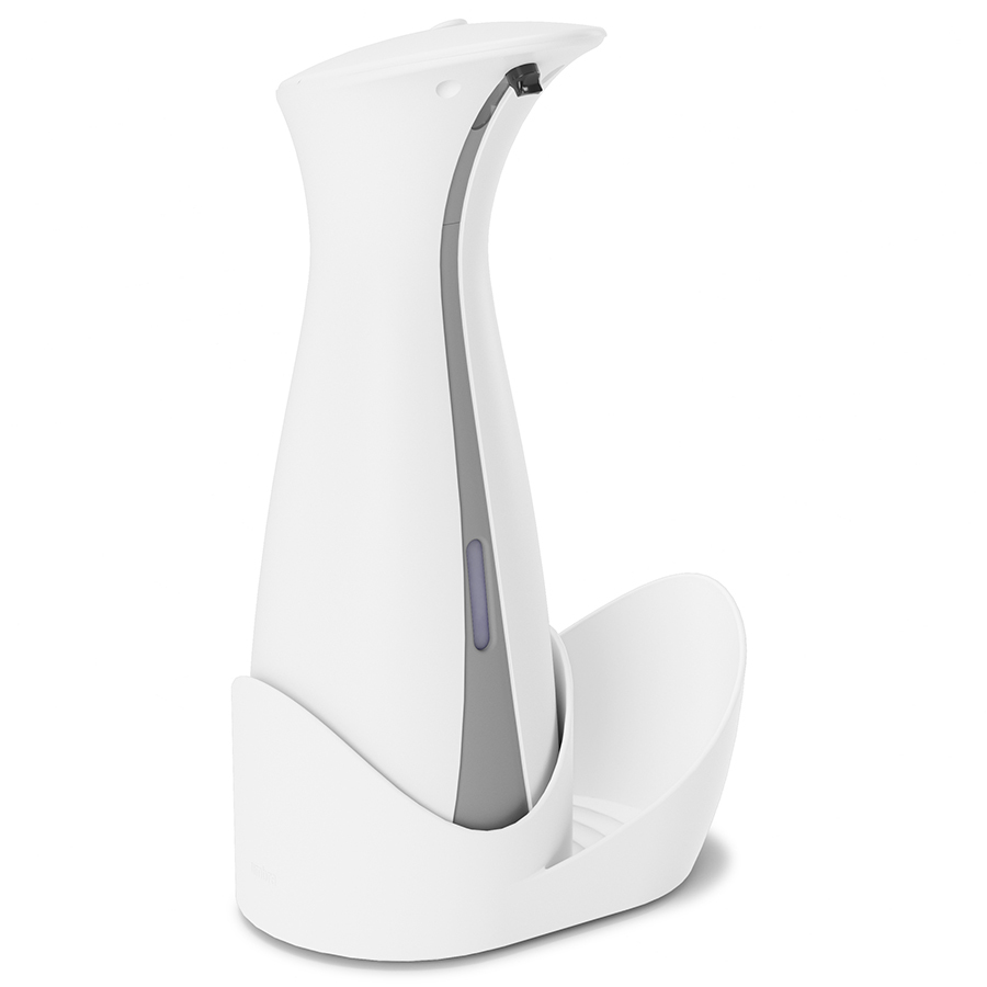 Сенсорный диспенсер Otto реагирует на движение: достаточно поднести к нему руки и вы получите порцию жидкого мыла. Светодиодные индикаторы сигнализируют о включении и выключении питания, а также о низком заряде батареи. Поставляется в комплекте с контейнером для губки. Диспенсер вмещает 255 мл жидкого мыла. Для работы требуются 4 батарейки АAA (,не входят в комплект),.