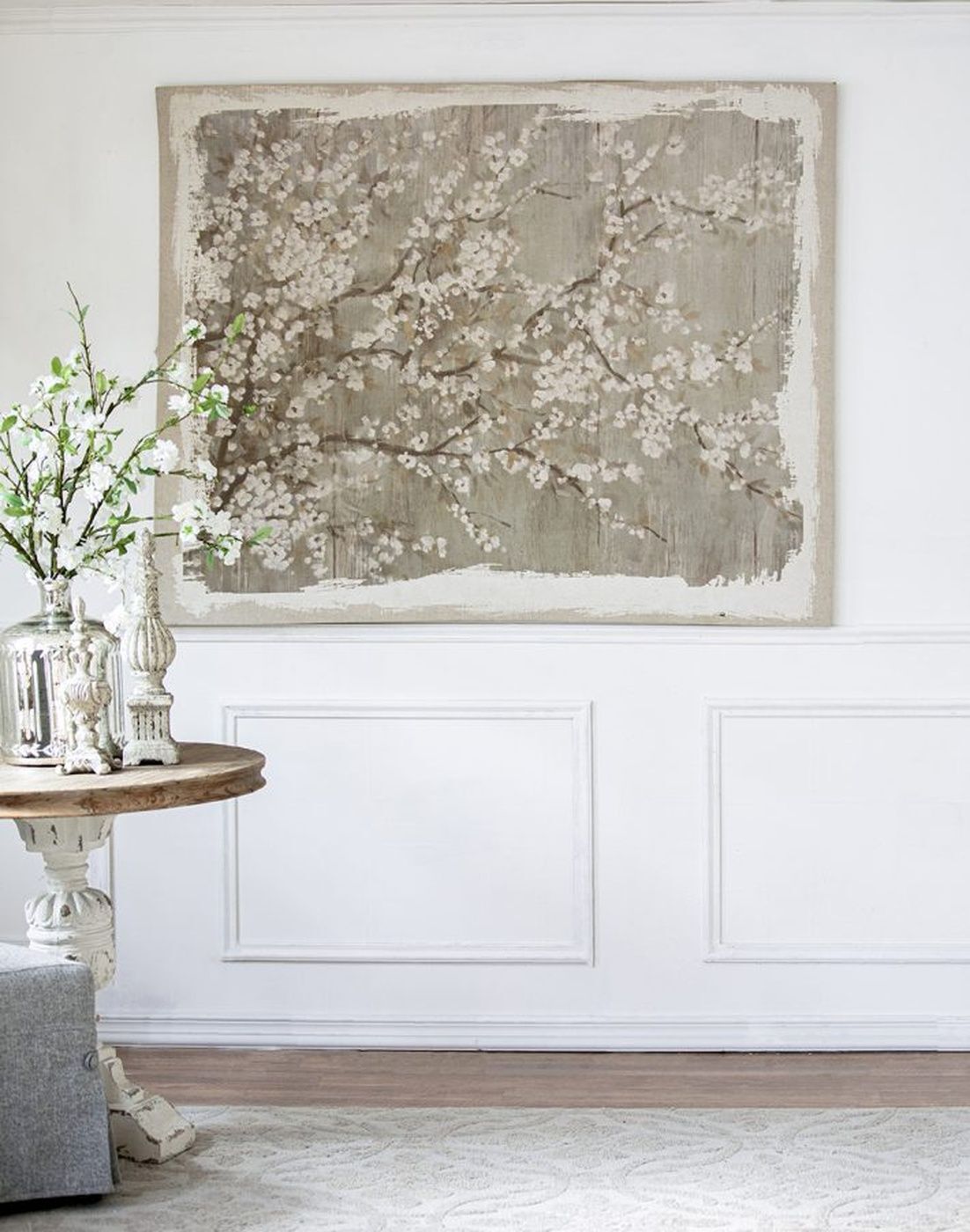 Цветущая вишня на холсте предлагает разместить в вашем интерьере нежные и мягкие тона оттенков, которые потрясающе смотрятся в домашней или офисной обстановке.