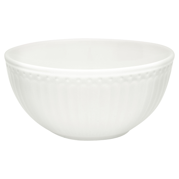 Эстетичная глубокая пиала, выполненная из высококачественного, экологически чистого фарфора. Классический стиль изделия позволяет легко вписать пиалу в оформление Вашего стола. Она легко дополнит собой торжественную сервировку и станет удобной ёмкостью для салатов и десертов, супов. Пиала выигрышно смотрится за счёт оригинального дизайна с ребристыми линиями и объёмными точками. Глазурь, покрывающая поверхность пиалы, изящно обыгрывает преломление цвета на чаше, приятна на ощупь, защищает фарфор от трещин, потёртостей. Данный продукт проходит стадию ручной обработки, поэтому на каждом изделии присутствуют индивидуальные особенности покрытия, которые не влияют на функциональность продукта и не являются дефектом. Пиалу можно использовать в микроволновой печи и мыть в посудомоечной машине. "GreenGate – скандинавская компания с почти тридцатилетней историей и поклонниками по всему миру. Изюминкой компании является знаменитая формула «mix and match» (смешивай и сочетай), заключающаяся в возможности комбинирования изделий в зависимости от собственных предпочтений. Базовый ассортимент коллекции Alice идеально сочетается с посудой из ранних и будущих коллекций GreenGate, позволяя ей быть как основой, так и связующим звеном с другими коллекциями бренда.