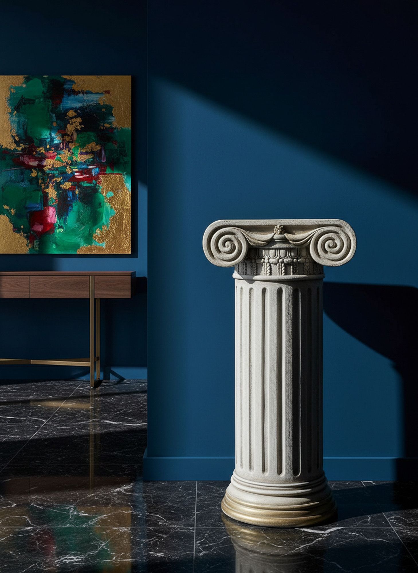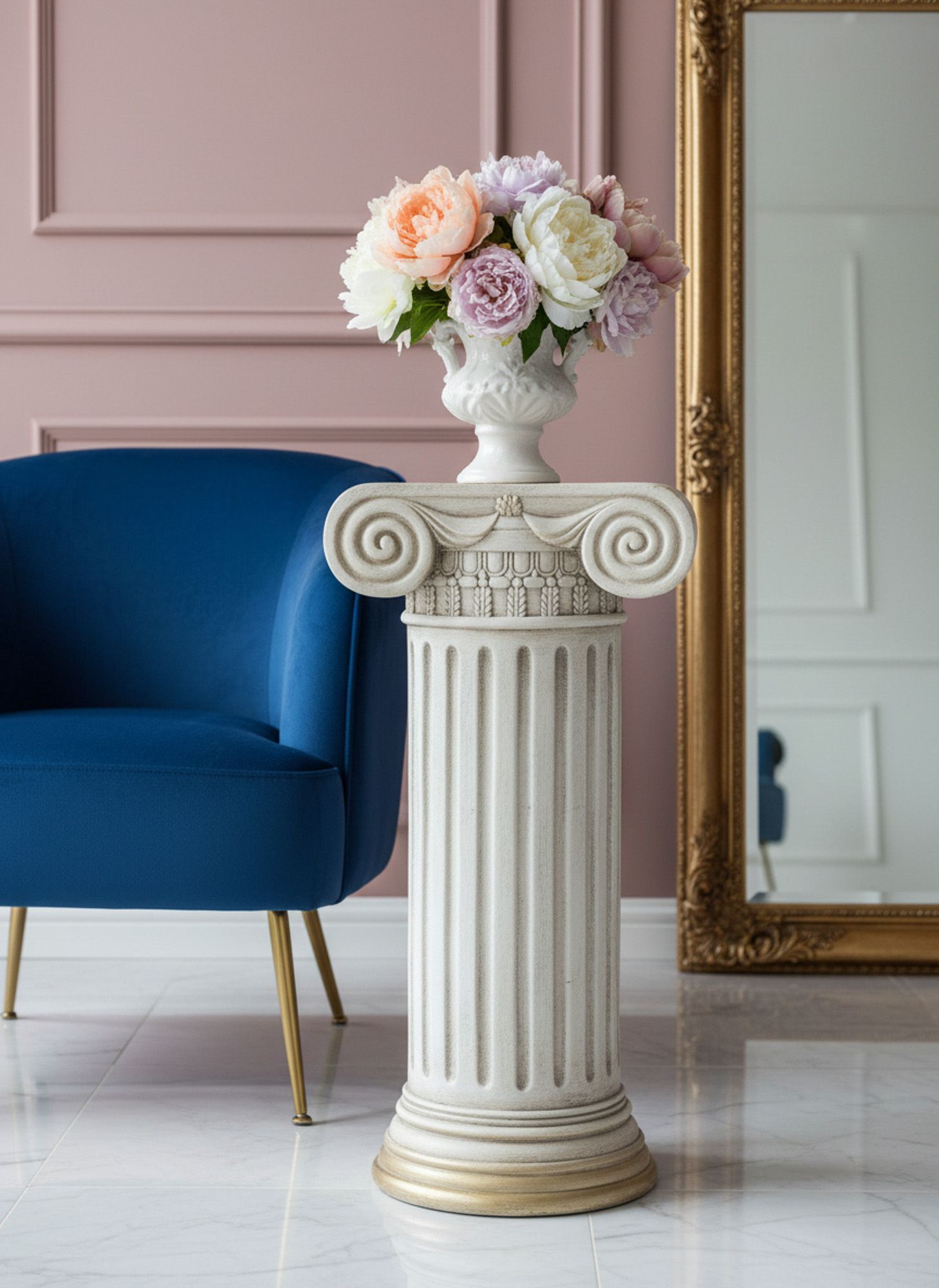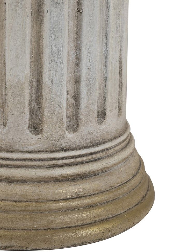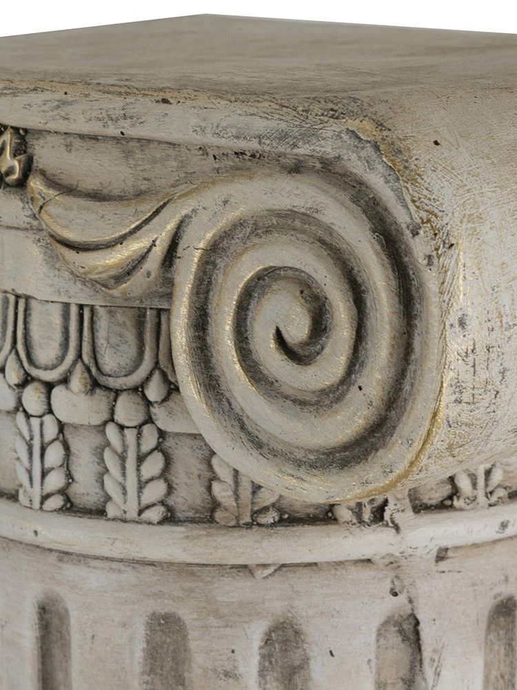 Пьедестал в виде античной колонны создаст величественный и невероятно красивый стиль греческих и римских эпох. Уникальная эстетика и гармония этого изделия никогда не потеряют свою актуальность, демонстрируя на своей поверхности элементы декора, цветочные композиции и другие предметы. Поверхностные потертости и неровности с эффектом реставрации, трещины и сколы краски на изделии характеризуют индивидуальный подход к производству каждого предмета, создавая задуманный дизайнером античный образ ушедших эпох.