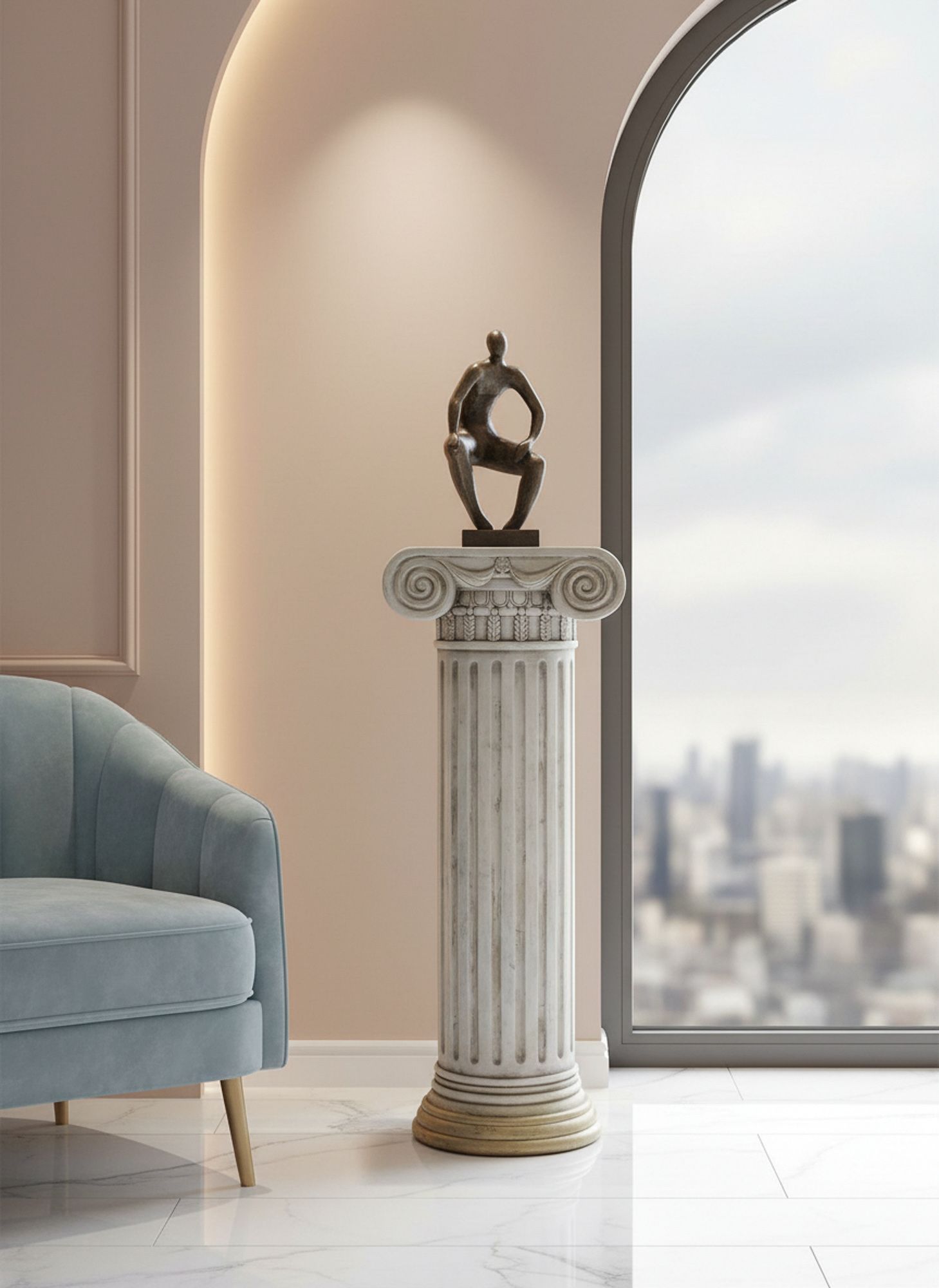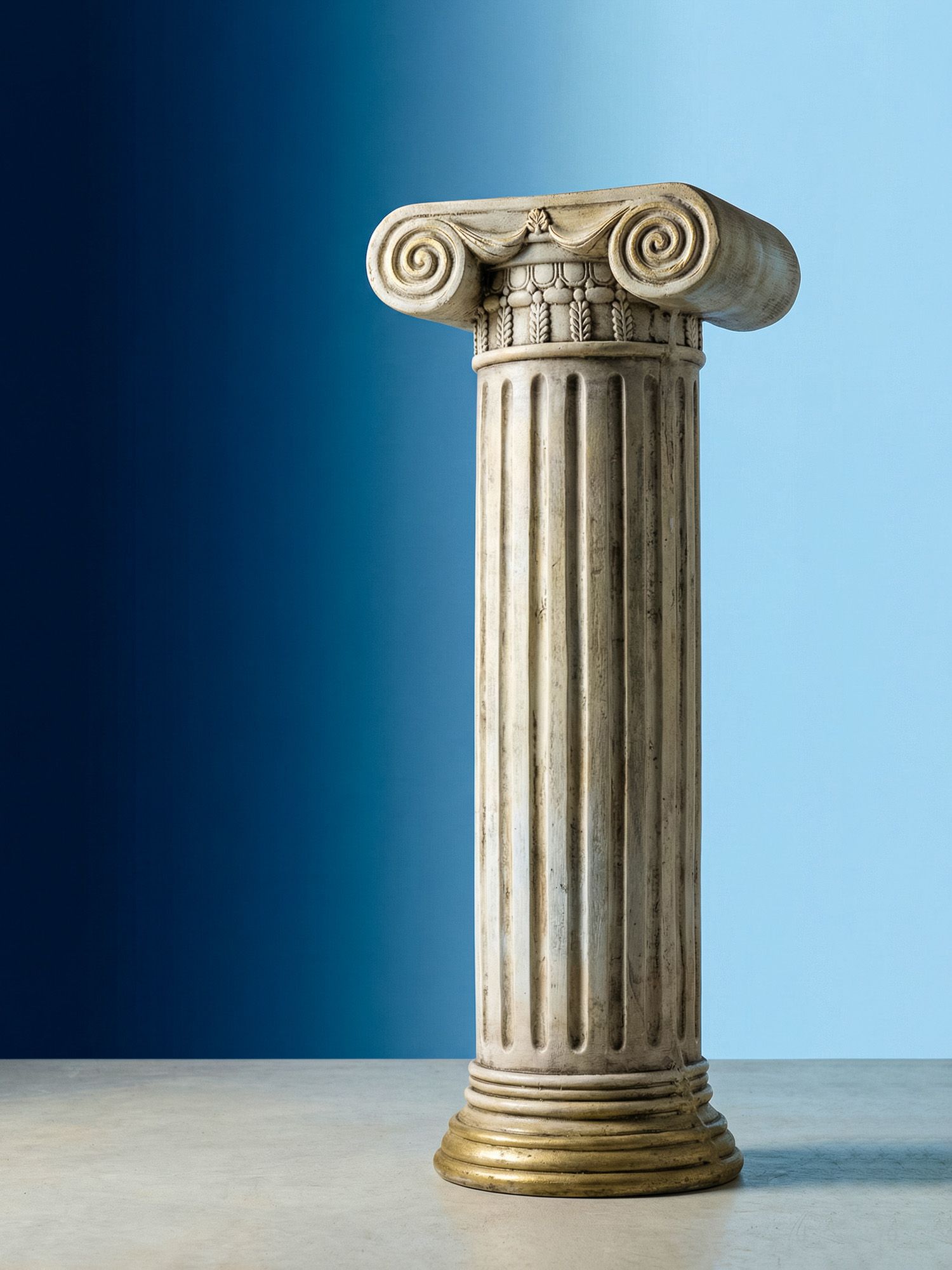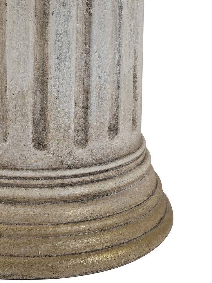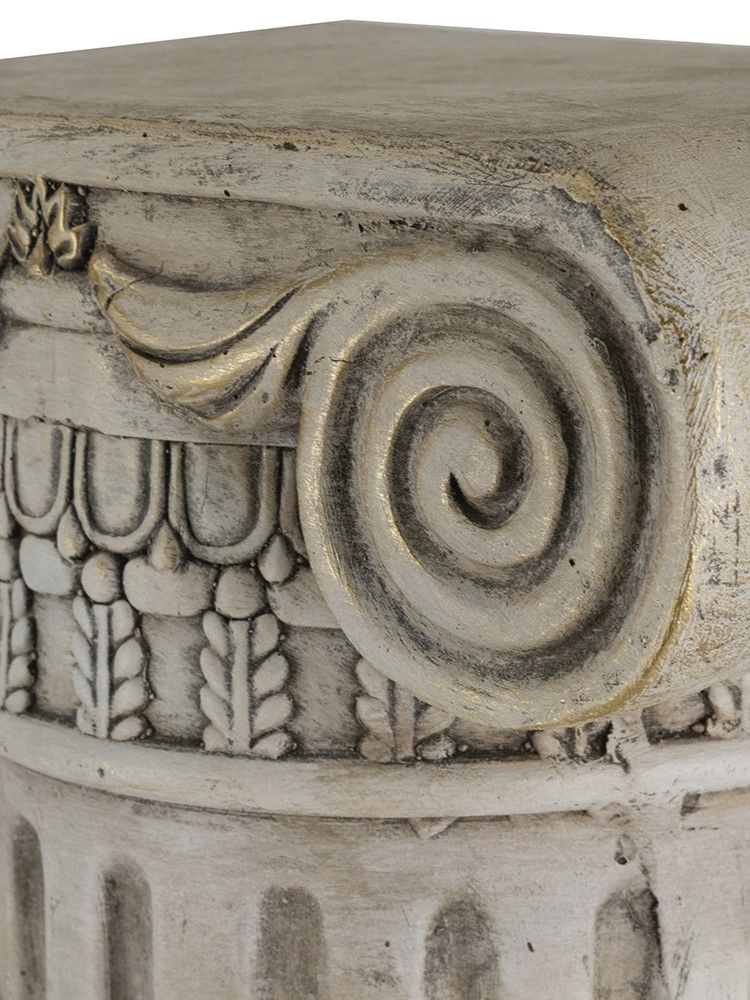 Пьедестал в виде античной колонны создаст величественный и невероятно красивый стиль греческих и римских эпох. Уникальная эстетика и гармония этого изделия никогда не потеряют свою актуальность, демонстрируя на своей поверхности элементы декора, цветочные композиции и другие предметы. Поверхностные потертости и неровности с эффектом реставрации, трещины и сколы краски на изделии характеризуют индивидуальный подход к производству каждого предмета, создавая задуманный дизайнером античный образ ушедших эпох.