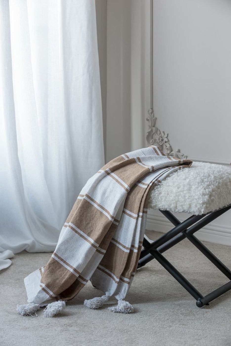 Стильное тонкое двуспальное плед-покрывало из хлопка - это современное украшение вашего дома, которое подойдет на двуспальную кровать, а также послужит накидкой на кресло или диван. Угловые части изделия акцентированы кисточками из хлопка. Идеальный подарок на любой праздник.