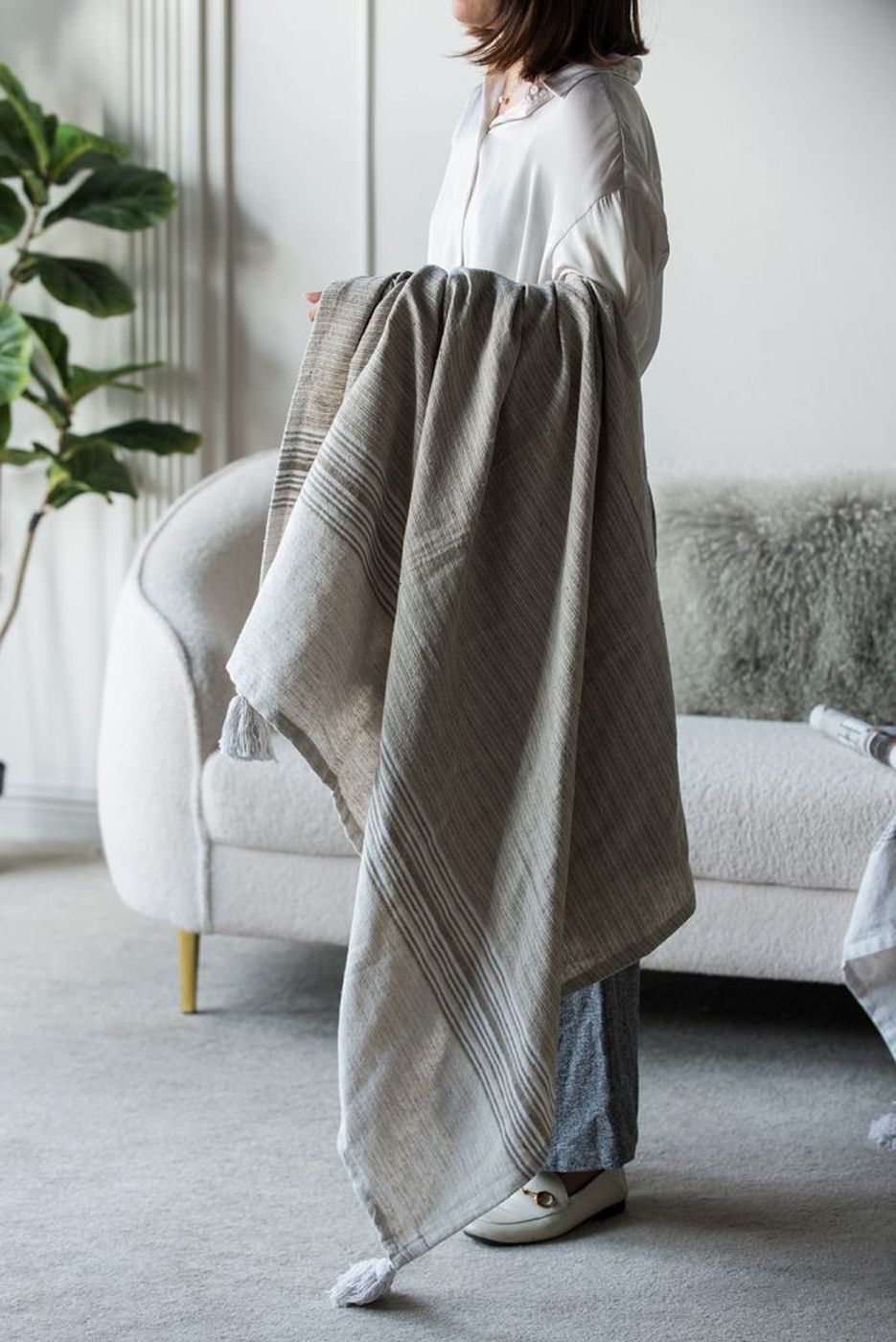 Стильное тонкое двуспальное плед-покрывало из хлопка - это современное украшение вашего дома, которое подойдет на двуспальную кровать, а также послужит накидкой на кресло или диван. Угловые части изделия акцентированы кисточками из хлопка. Идеальный подарок на любой праздник.