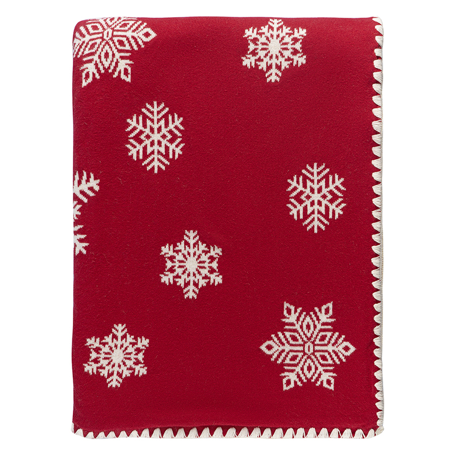 "Плед из хлопка с новогодним рисунком Fluffy snowflakes из коллекции New Year Essential – яркий элемент праздничного декора и уютный аксессуар, который поможет создать в интерьере теплую домашнюю атмосферу.