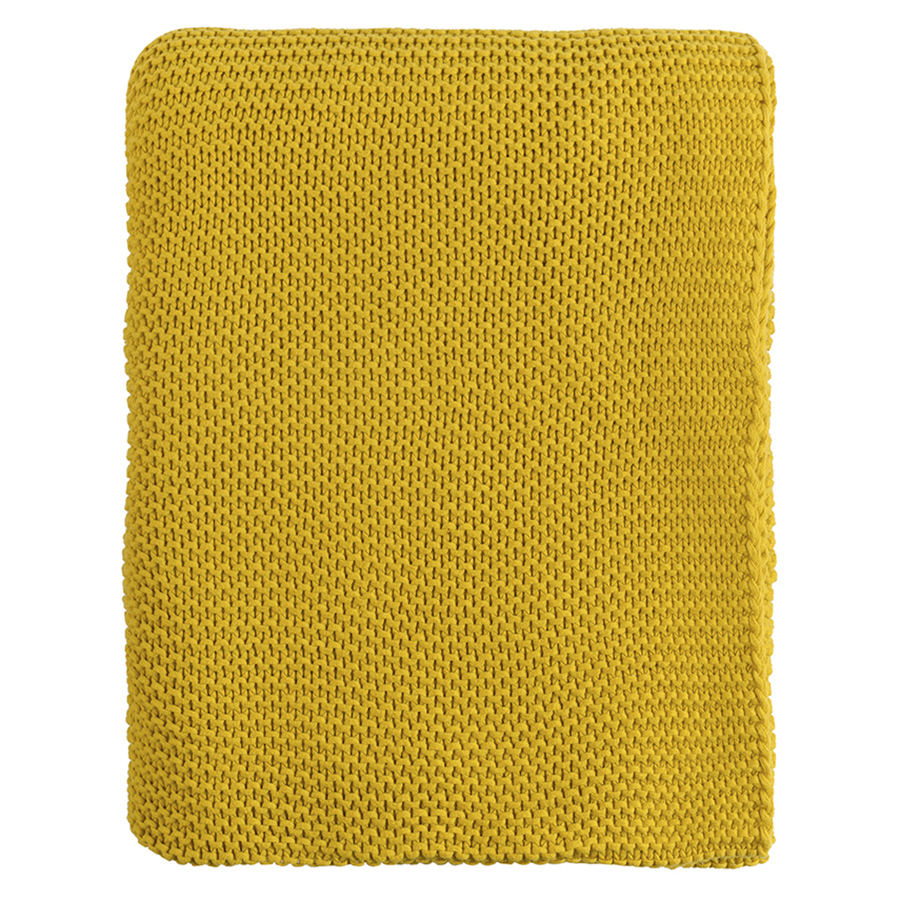 "Плед горчичного цвета из хлопка жемчужной вязки из коллекции Essential – стильный аксессуар для спальни, гостиной или детской комнаты. Он выполнен из гипоаллергенного и приятного на ощупь натурального хлопка. Дышащий фактурный материал легкий и теплый. Изделие упаковано в брендированную крафтовую коробку.