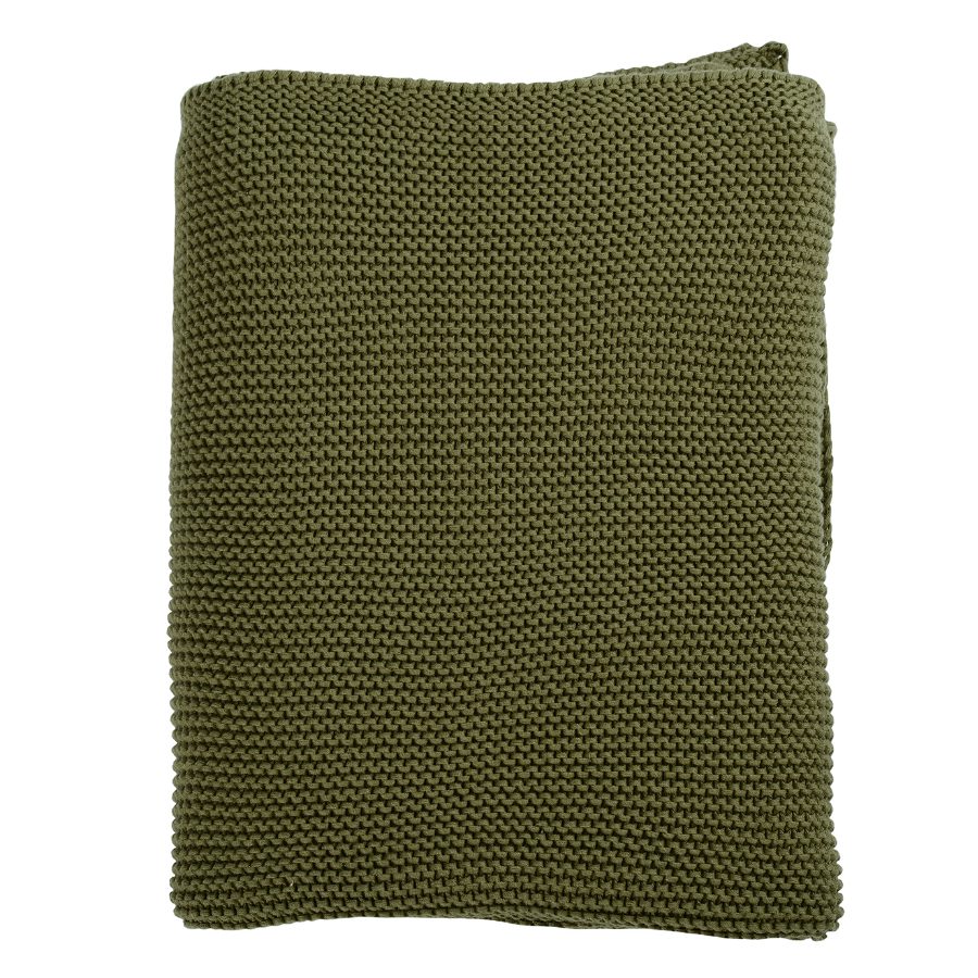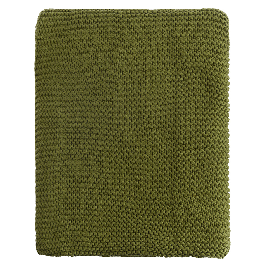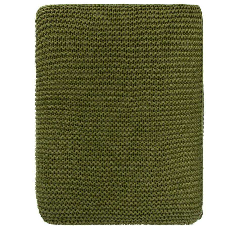 "Плед оливкового цвета из хлопка жемчужной вязки из коллекции Essential – стильный аксессуар для спальни, гостиной или детской комнаты. Он выполнен из гипоаллергенного и приятного на ощупь натурального хлопка. Дышащий фактурный материал легкий и теплый. Изделие упаковано в брендированную крафтовую коробку.