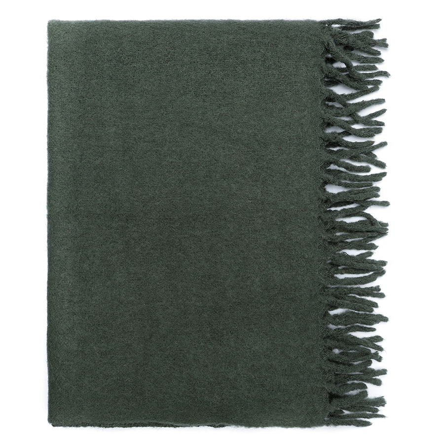 "Мохеровый плед хвойно-зеленого цвета из коллекции Essential станет удачным дополнением любого интерьера, где ценится комфорт и внимание к деталям. Мягкое на ощупь полотно будет вашим верным спутником в прохладные вечера у камина или на пикнике на природе.
