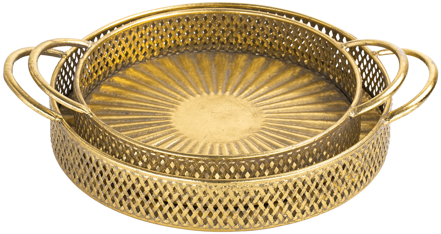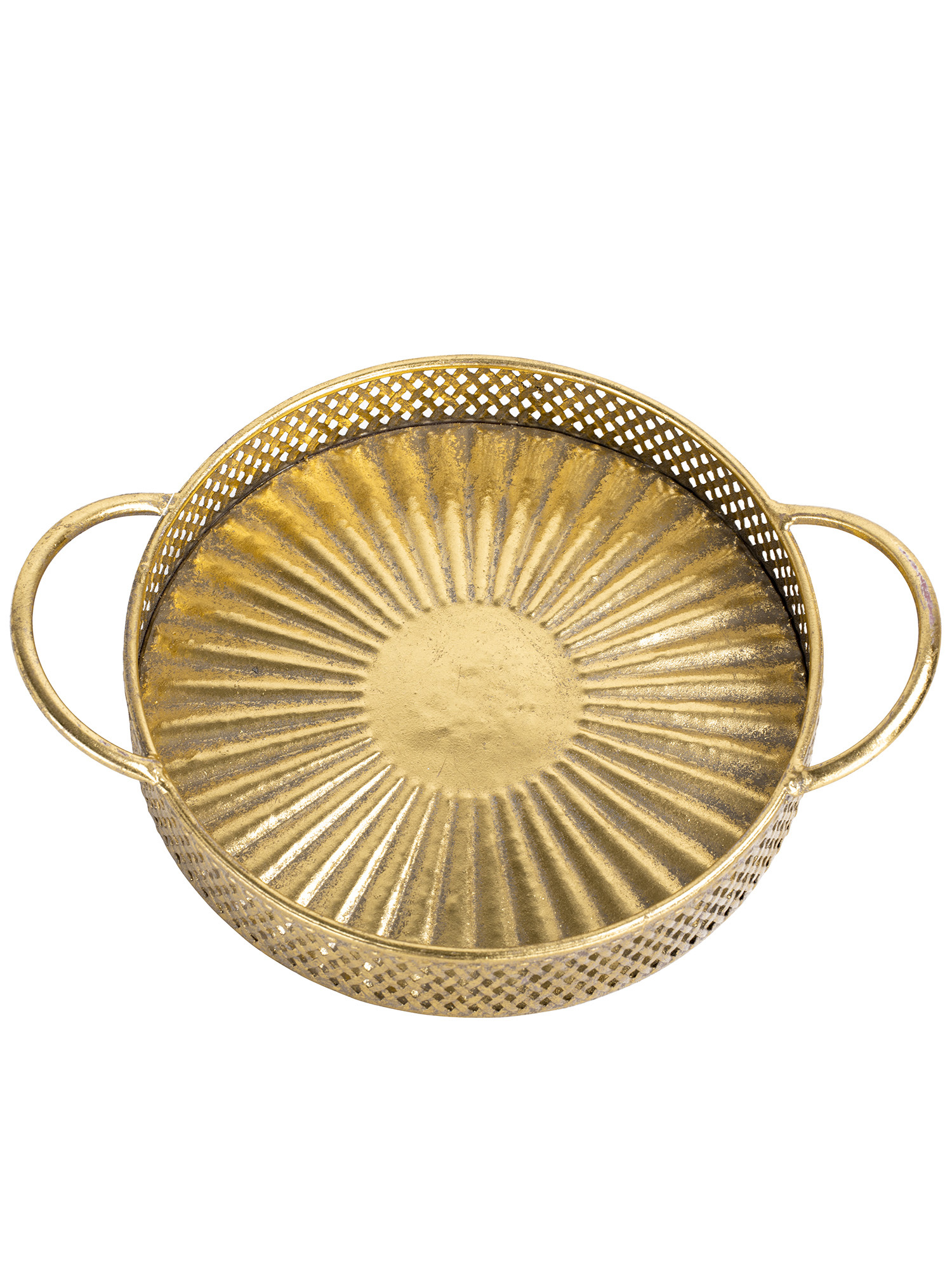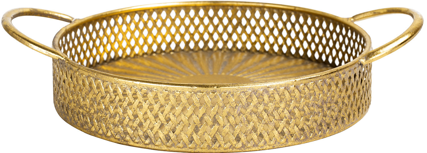 Металлический поднос Алжир в африканском стиле, с напылением золотистого цвета и винтажным эффектом, придаст современный вид любому столу. Изделие имеет признаки искусственного состаривания, поверхность декорирована с эффектом патинирования, а наличие сварочных фрагментов подчеркивают принадлежность к ручной работе. Сдержанный дизайн изделия станет отличным акцентом и дополнением к Вашему интерьеру. Эксклюзивные формы и фактуры навеяло богатство культуры Африки, множество художественных традиций и таинственная атмосфера, окутывающая неподражаемостью.