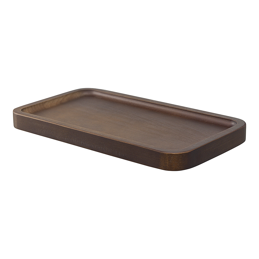 "Поднос Bernt – настоящее украшение любой сервировки и стильный акцент интерьера. Изделие из натуральной древесины ореха отличается презентабельным внешним видом, экологичностью, высокой прочностью и устойчивостью к износу. Края подноса немного возвышаются над основанием, образуя специальные бортики, которые надежно фиксируют продукты внутри и делают дизайн более привлекательным. Аксессуар прекрасно вписывается в различные стилевые решения кухни и столовой.