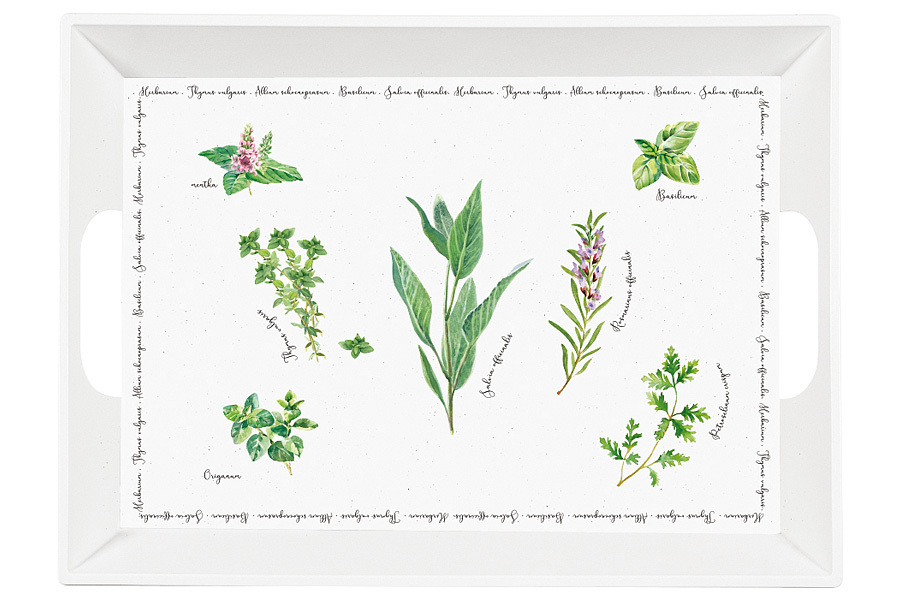 Поднос, 51х38 см, с ручками, пластик, белый в крапинку, прямоугольная, Растения, Herbarium EL