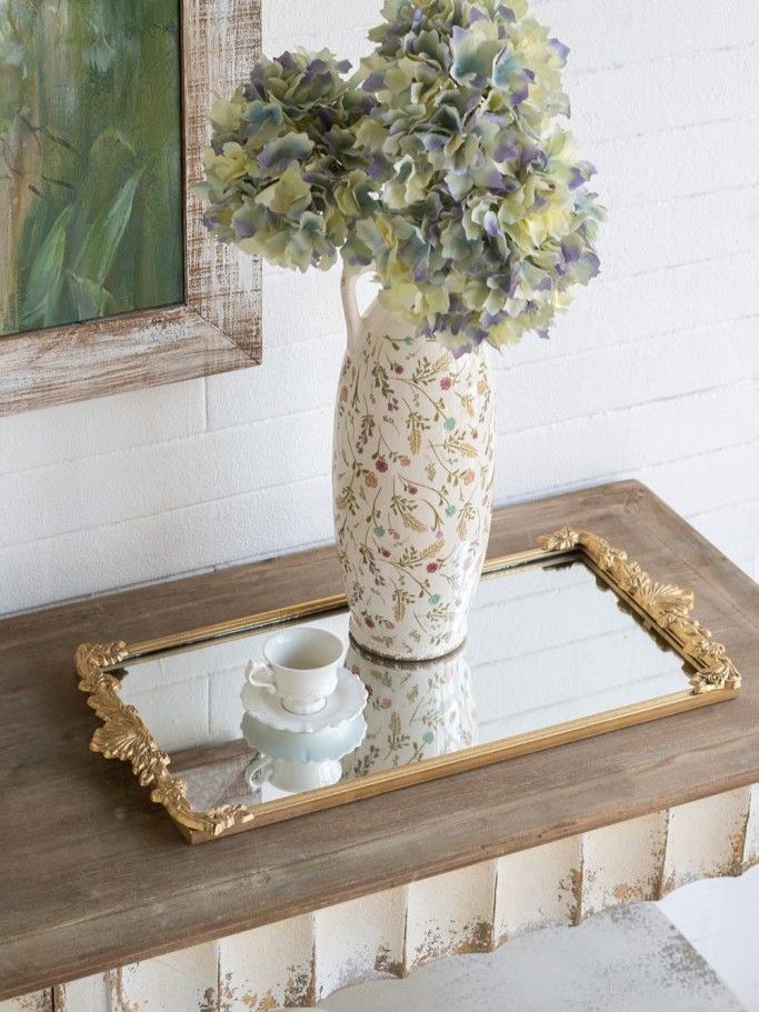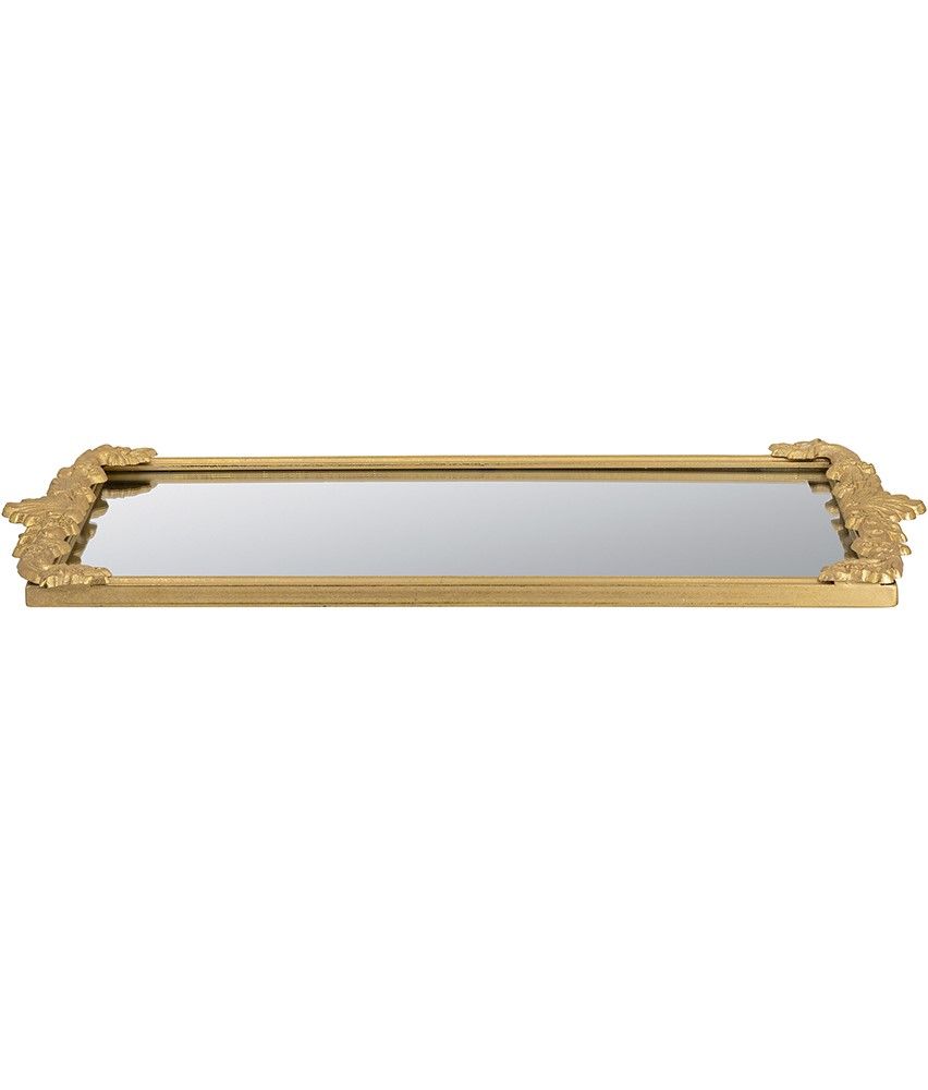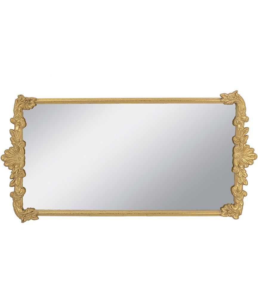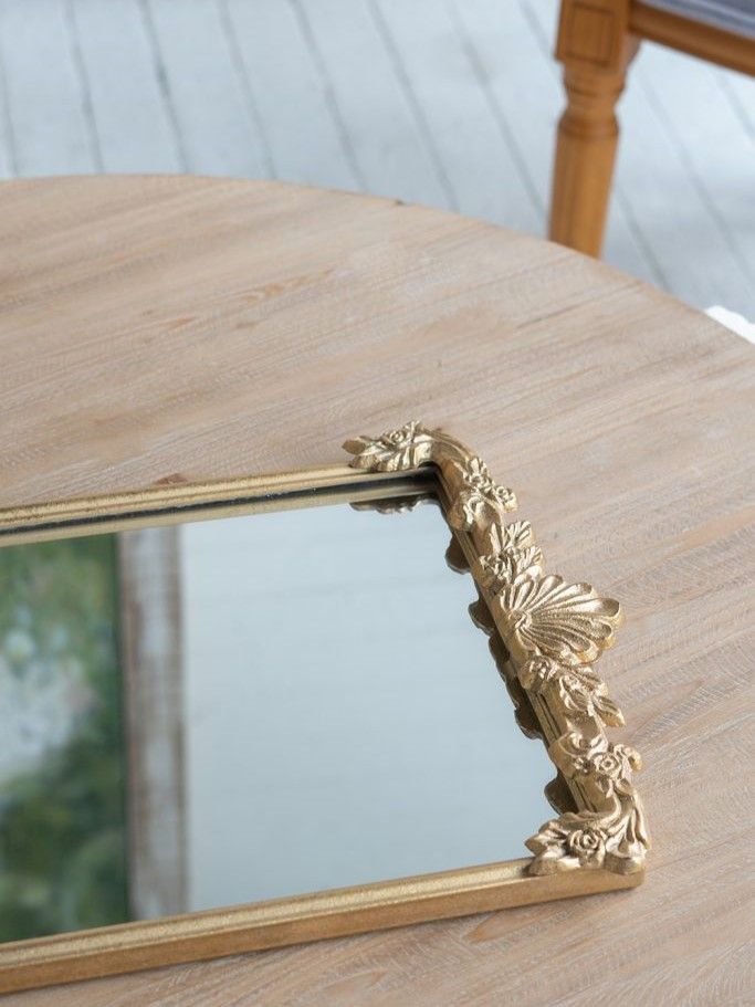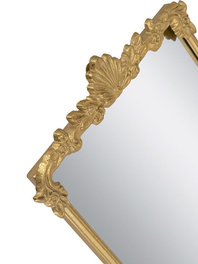 Изысканное настенное зеркало, вдохновленное утонченной красотой искусства рококо, украшен декоративной золотистой рамой, резными деталями в виде листьев и элегантной зеркальной поверхностью. Изделие также можно использовать в качестве подноса для подачи напитков, демонстрации ярких центральных предметов или как отдельный предмет декора, привлекая внимание в любой комнате вашего дома. Антикварный дизайн и роскошная цветовая гамма позволяют этому изделию сочетаться с традиционными, арт-деко и дворцовыми стилями.
