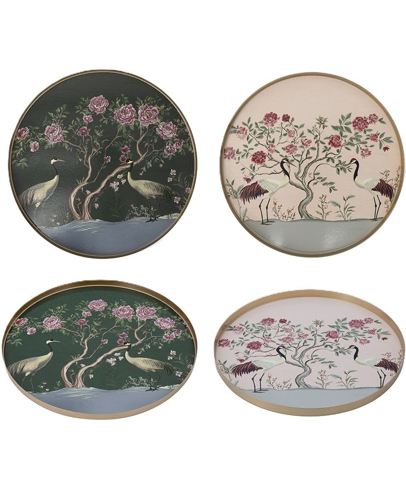 Превосходный набор из двух подносов разного размера, сочетающий в себе винтажный дизайн и непринужденное очарование природы, имеют круглую форму с низкими бортами и украшены сказочными мотивами райского сада с птицами в двух вариантах - ночью и днем. Изделия идеально подходят для сервировки напитков и закусок, размещения цветочных композиций, или демонстрации других предметов, украшая любую поверхность стола в гостиной, прихожей или спальной комнате, при этом органично дополняя традиционные, эклектичные и переходные стили интерьера.