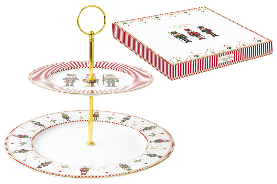 Подставка для пирожных, 27х19/23 см, 2 яруса, фарфор P/металл, белая с золотистым кантом, Щелкунчик, Nutcracker