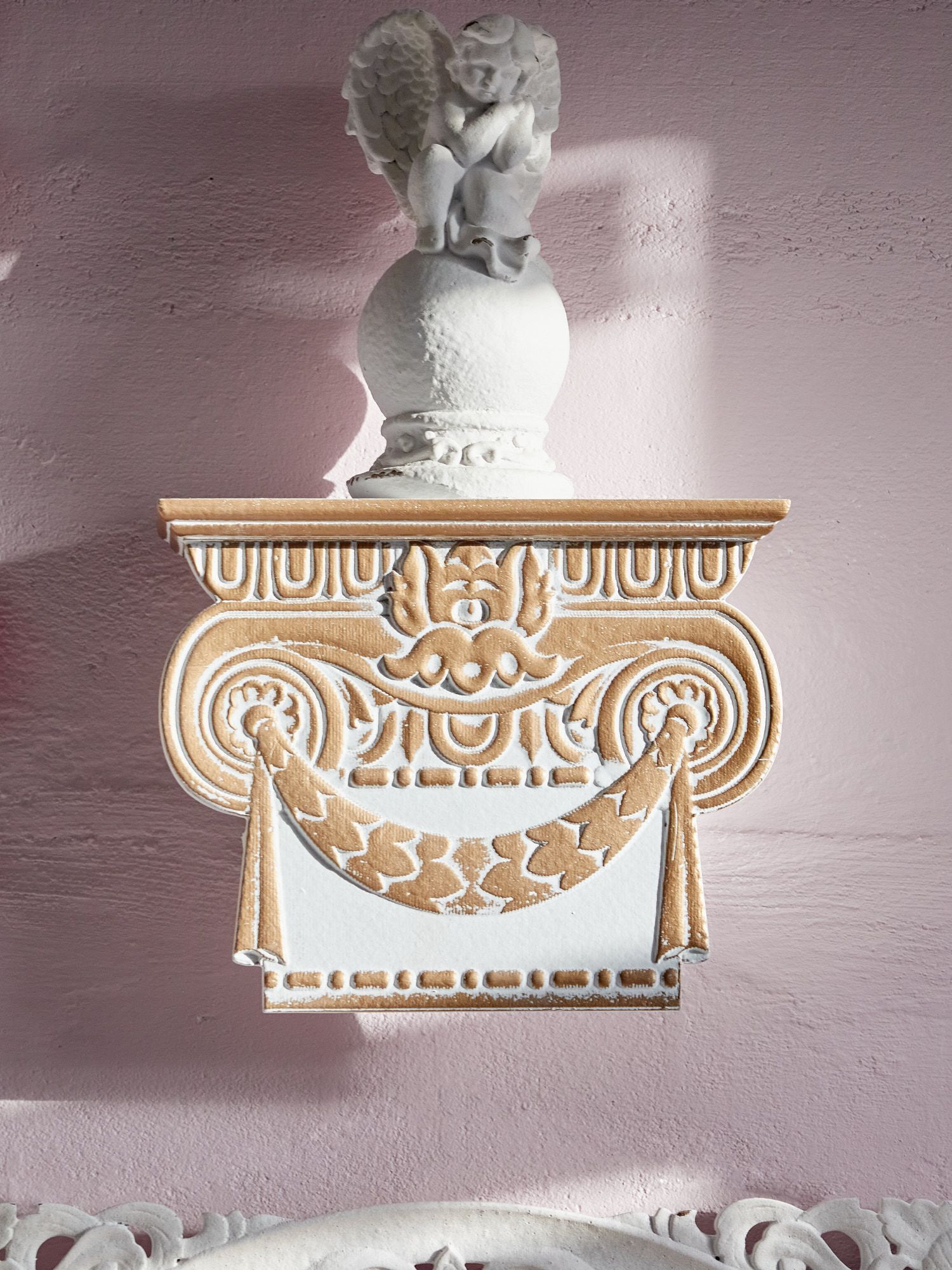 Настенная консоль в виде капители создаст новую атмосферу в вашем доме, привнося величественный античный стиль греческих и римских эпох. Эстетика и гармония этого изделия никогда не потеряют свою актуальность, демонстрируя на своей поверхности элементы декора, цветочные композиции и другие предметы. Поверхностные потертости с эффектом под старину характеризуют индивидуальный подход к производству каждого предмета, создавая задуманный дизайнером античный образ ушедших эпох.