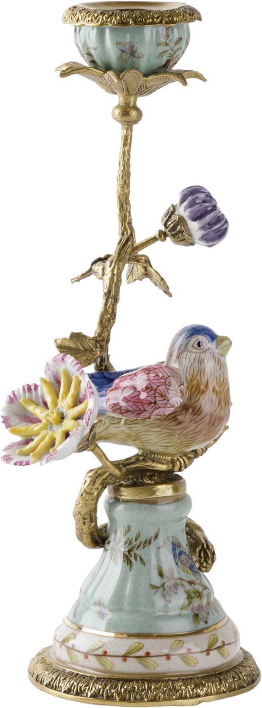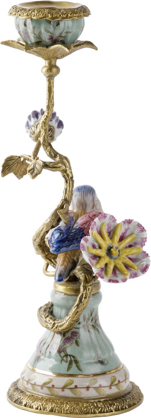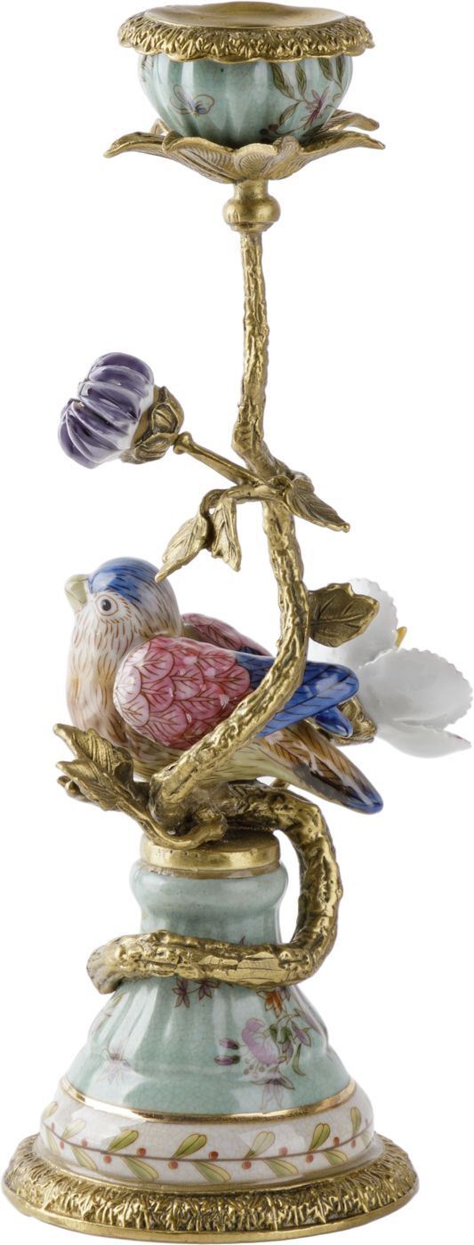 Подсвечник с птицей, выполненный из фарфора с бронзовыми элементами. Уникальное изделие ручной работы. При производстве этих художественных изделий из фарфора с бронзой используются вековые традиции китайских мастеров. Видимые трещинки (кракелюры) делаются по уникальной технологии, что придает более благородный вид старинного изделия.