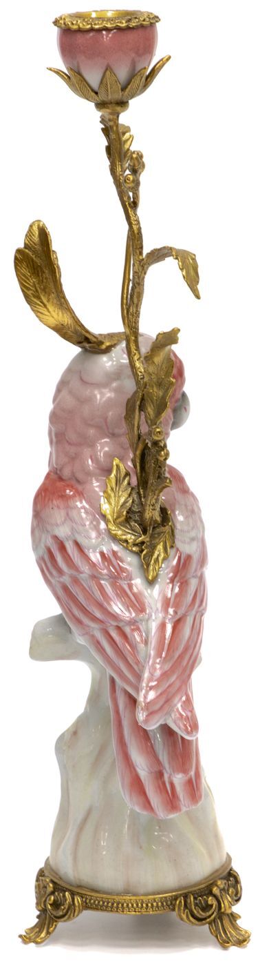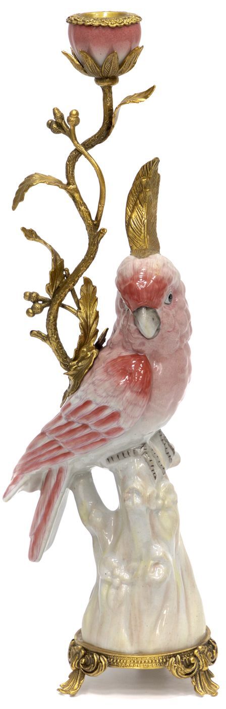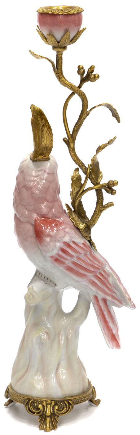 Подсвечник в образе попугая, выполненный из фарфора с бронзовыми элементами. Уникальное изделие ручной работы. При производстве этих художественных изделий из фарфора с бронзой используются вековые традиции китайских мастеров. Видимые трещинки (кракелюры) делаются по уникальной технологии, что придает более благородный вид старинного изделия.