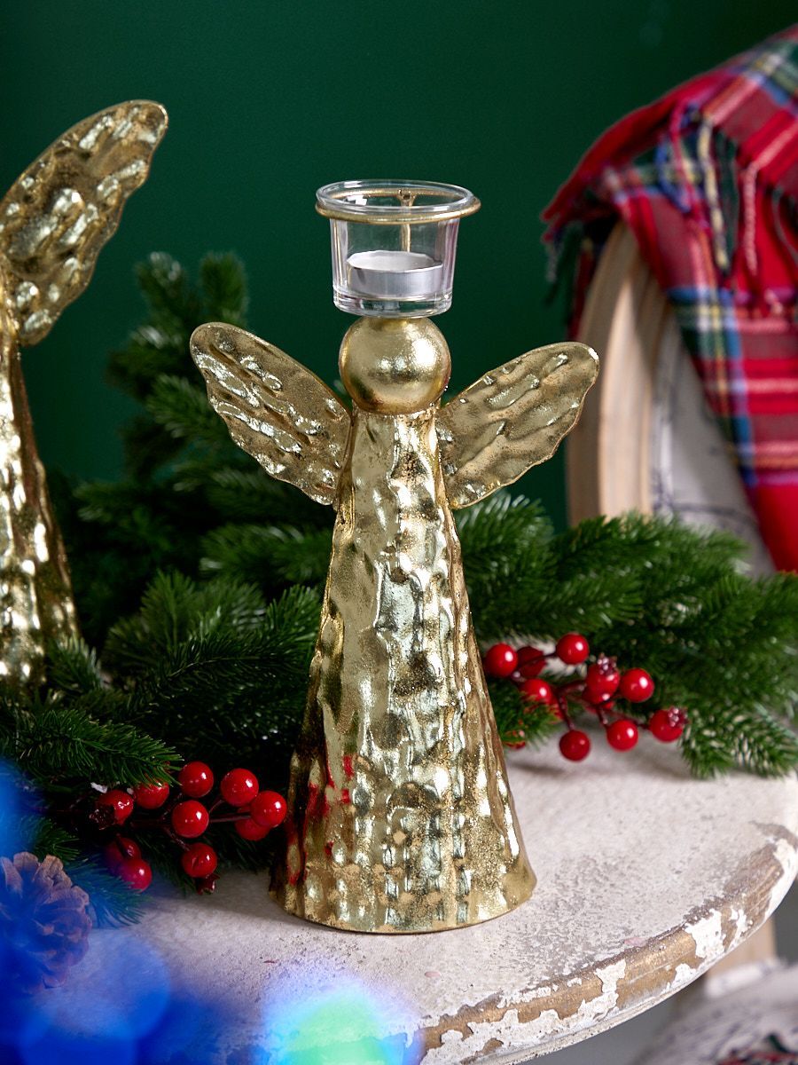 Подсвечник в виде ангела, выполненный из металла, предназначен для чайных и других устойчивых свечей. Изделие имеет признаки искусственного состаривания, наличие сварочных фрагментов подчеркивают принадлежность к ручной работе. Известно, что на пламя можно смотреть вечно, его мягкое золотистое сияние чарует и проясняет сознание. Огонь, льющийся из подсвечника, сделает атмосферу загадочной и романтичной.