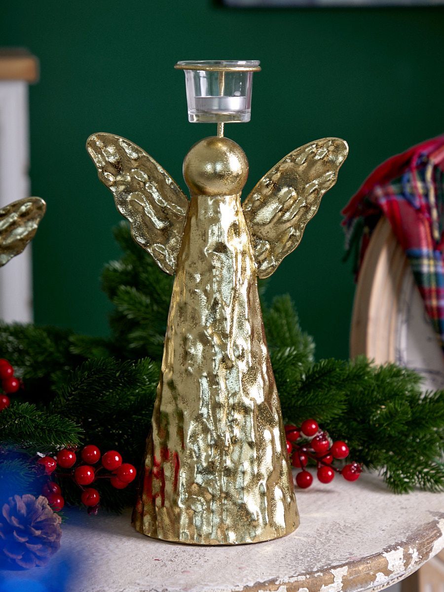 Подсвечник в виде ангела, выполненный из металла, предназначен для чайных и других устойчивых свечей. Изделие имеет признаки искусственного состаривания, наличие сварочных фрагментов подчеркивают принадлежность к ручной работе. Известно, что на пламя можно смотреть вечно, его мягкое золотистое сияние чарует и проясняет сознание. Огонь, льющийся из подсвечника, сделает атмосферу загадочной и романтичной.