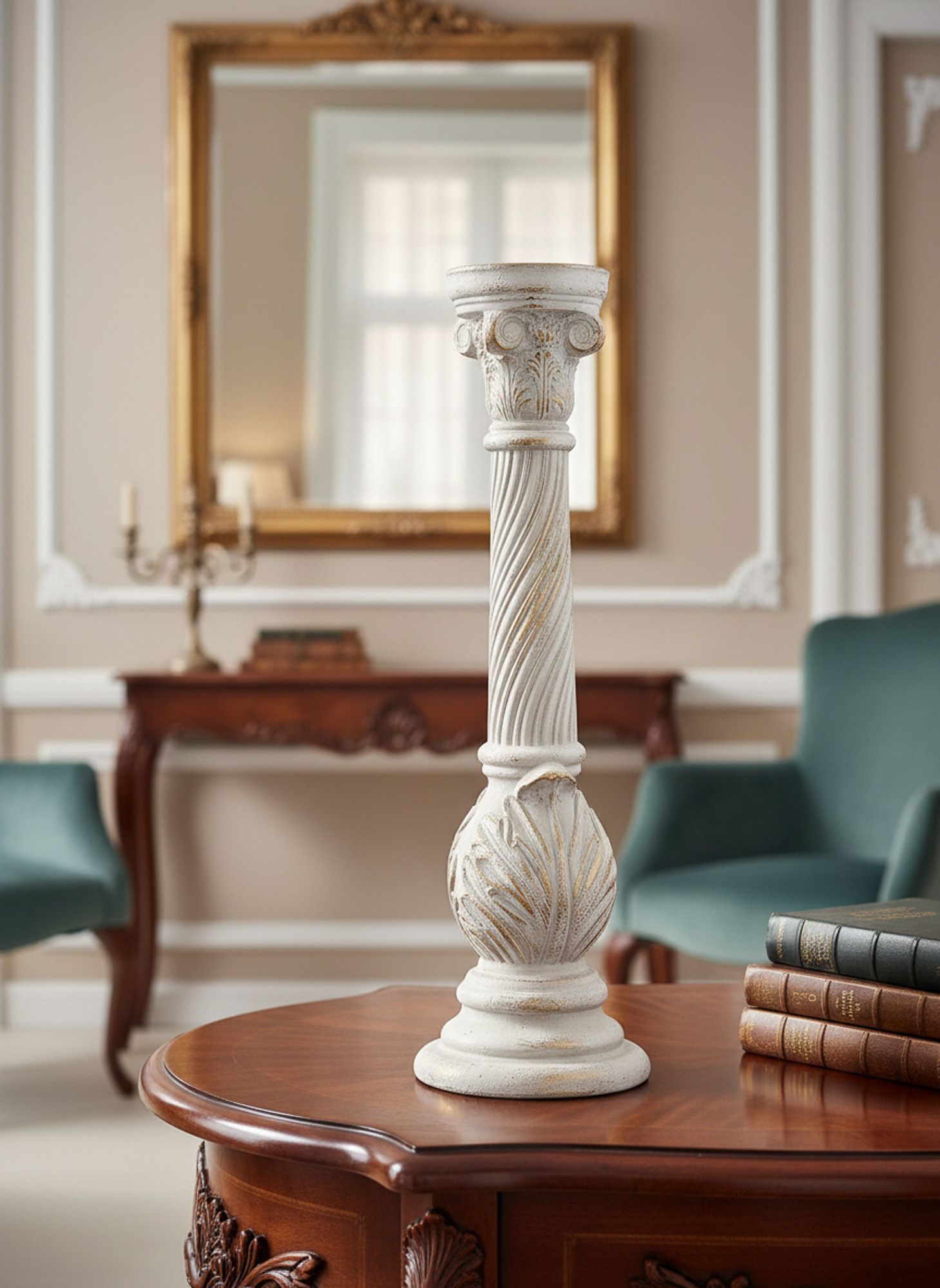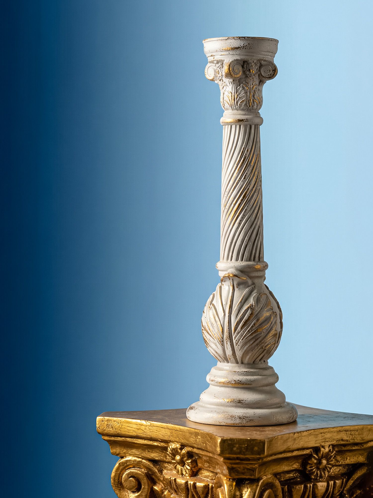 Подсвечник в виде античной колонны создаст величественный и невероятно красивый стиль греческих и римских эпох. Мерцание свечей, эстетика и гармония этого изделия привлекут внимание ваших гостей, создавая композицию с другими элементами декора. Поверхностные потертости и неровности с эффектом реставрации, трещины и сколы краски на изделии характеризуют индивидуальный подход к производству каждого предмета, создавая задуманный дизайнером античный образ ушедших эпох.