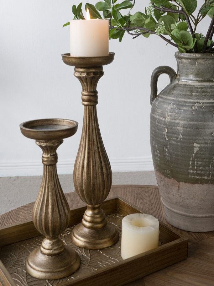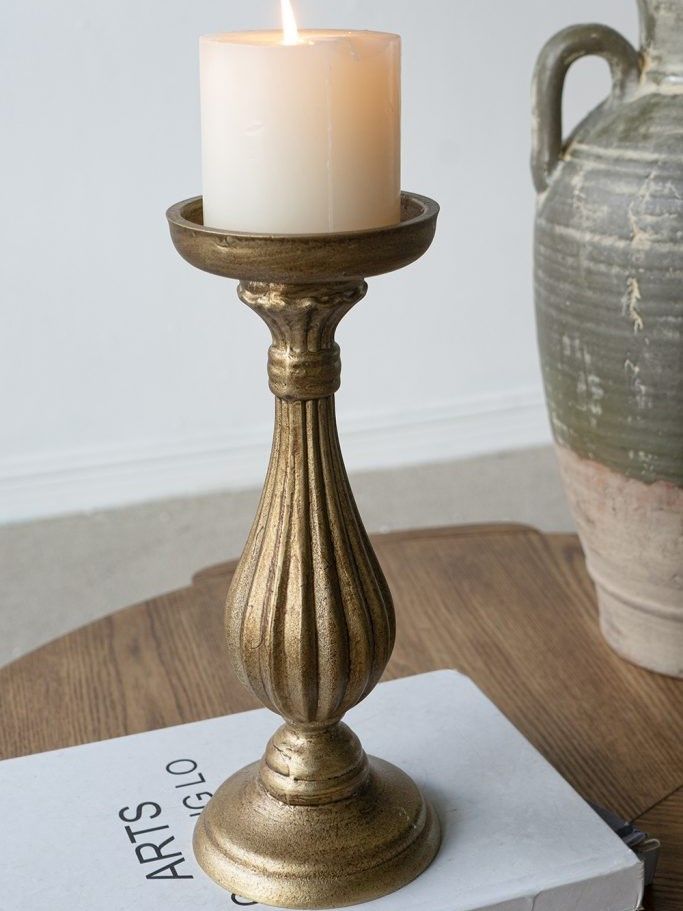 Элегантный подсвечник, вдохновленный искусной красотой произведений в стиле барокко, имеет форму колонны с плавно изогнутым корпусом и изысканной отделкой под античное золото. Поставьте подсвечник отдельно или вместе с изделиями из этой коллекции, композиция органично дополнит ваш домашний декор, легко вписываясь в фермерский, традиционный, французский кантри и эклектичный стили.