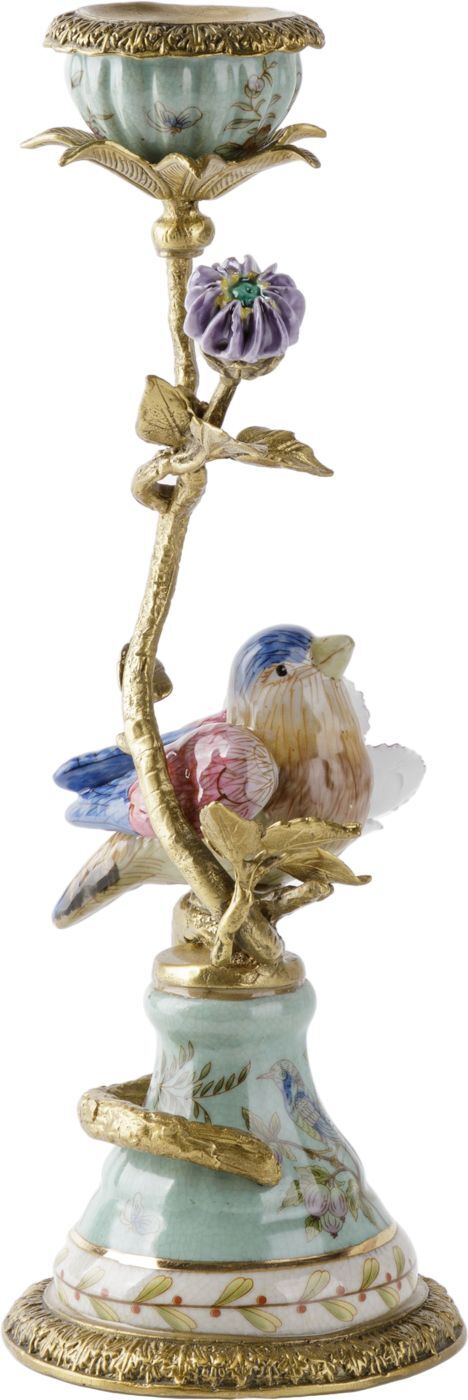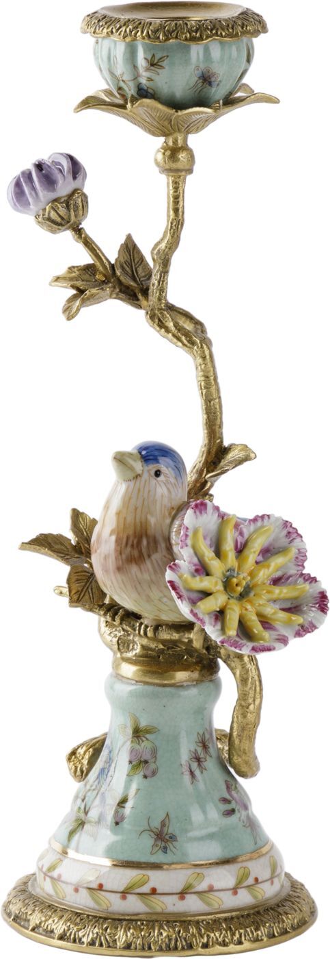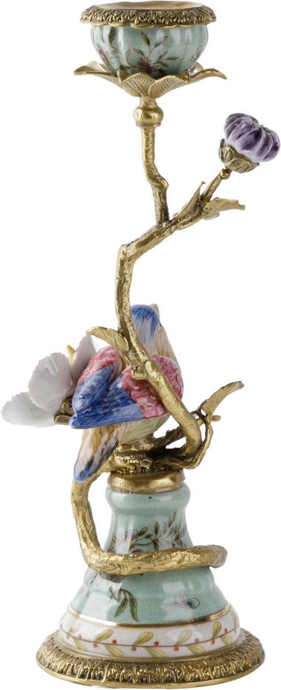 Подсвечник с птицей, выполненный из фарфора с бронзовыми элементами. Уникальное изделие ручной работы. При производстве этих художественных изделий из фарфора с бронзой используются вековые традиции китайских мастеров. Видимые трещинки (кракелюры) делаются по уникальной технологии, что придает более благородный вид старинного изделия.