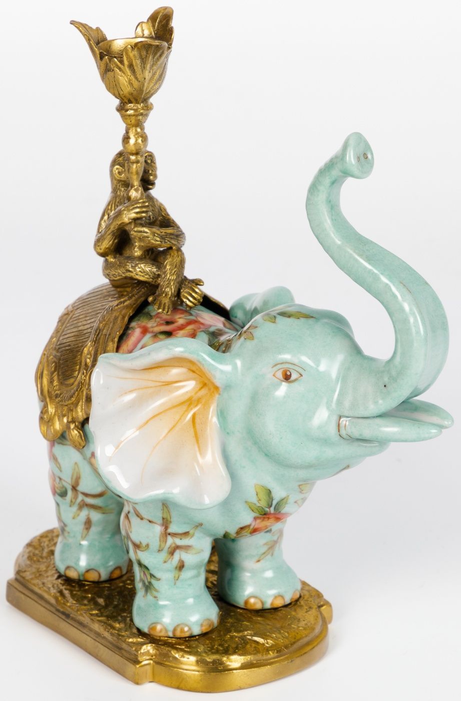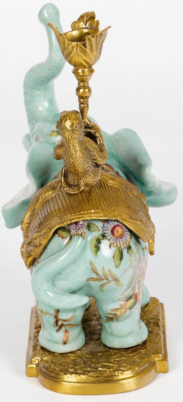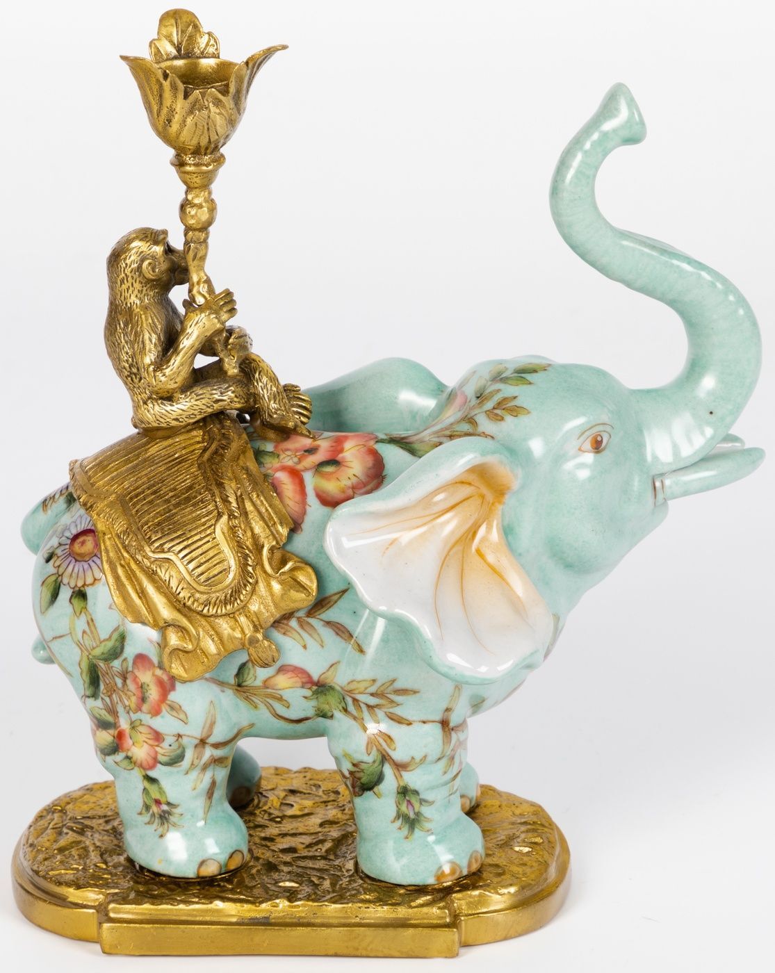 Подсвечник в виде слона, выполненный из фарфора с бронзовыми элементами. Уникальное изделие ручной работы. При производстве этих художественных изделий из фарфора с бронзой используются вековые традиции китайских мастеров. Видимые трещинки (кракелюры) делаются по уникальной технологии, что придает более благородный вид старинного изделия.